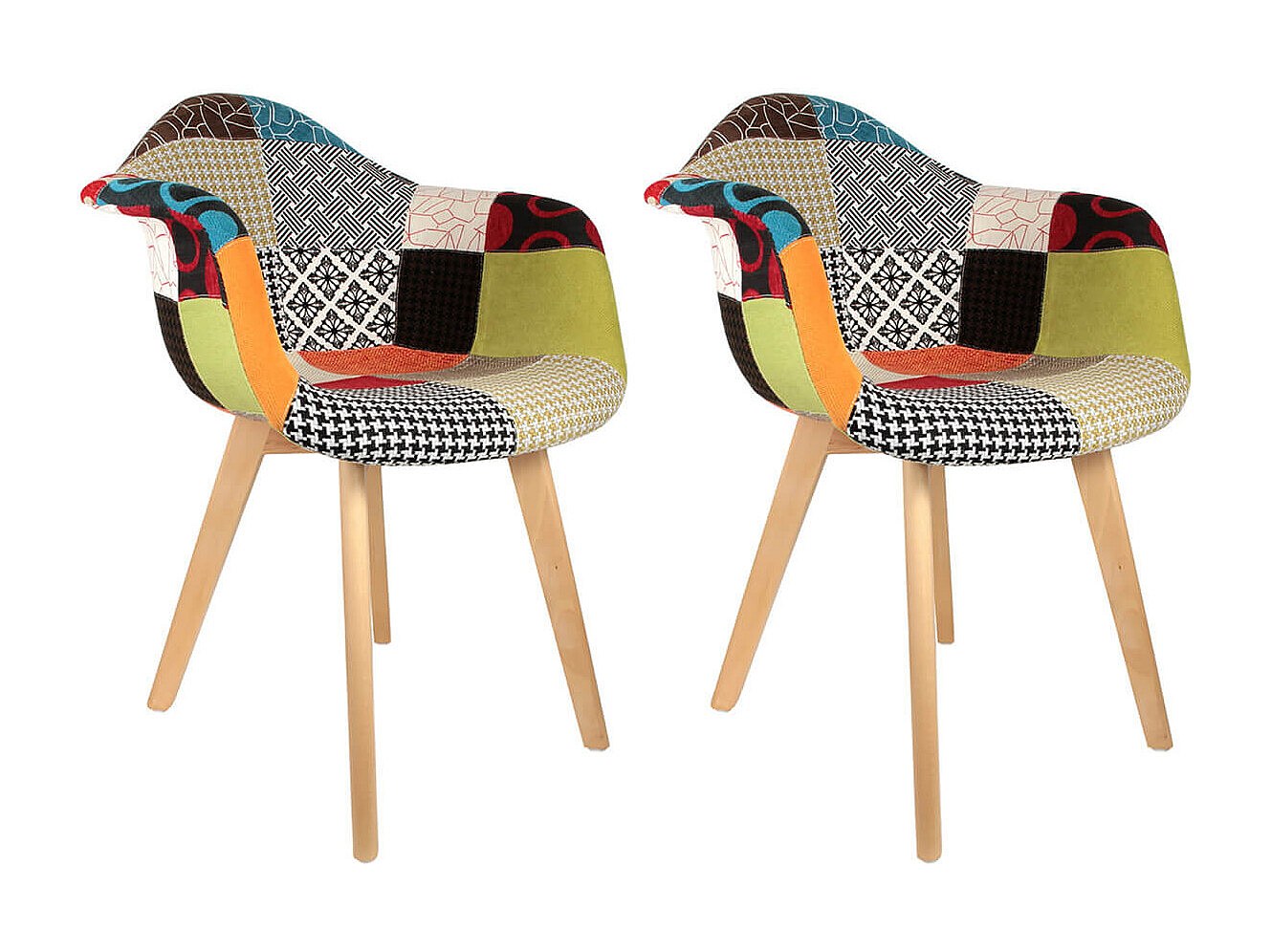 PATCHWORK - Lot de 2 Fauteuils Scandinaves Multicolore