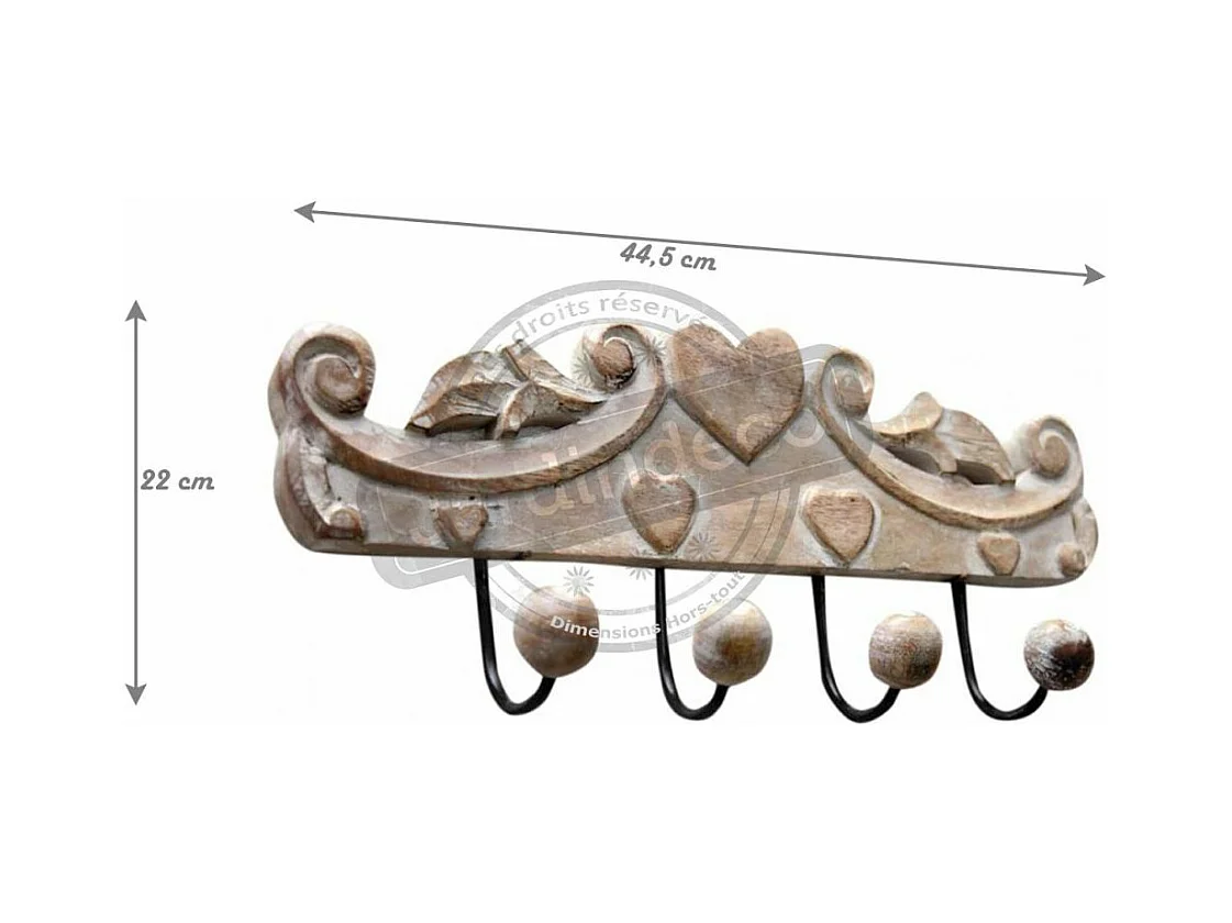 Patère en Bois Blanc avec 4 crochets en métal L 42 cm