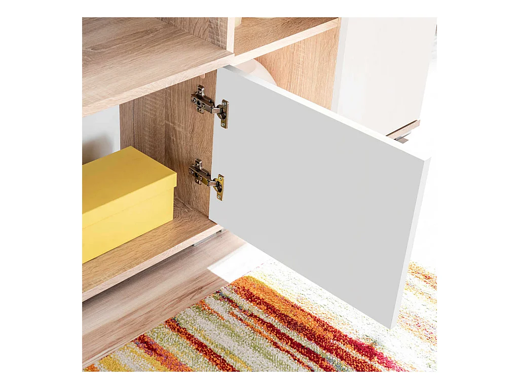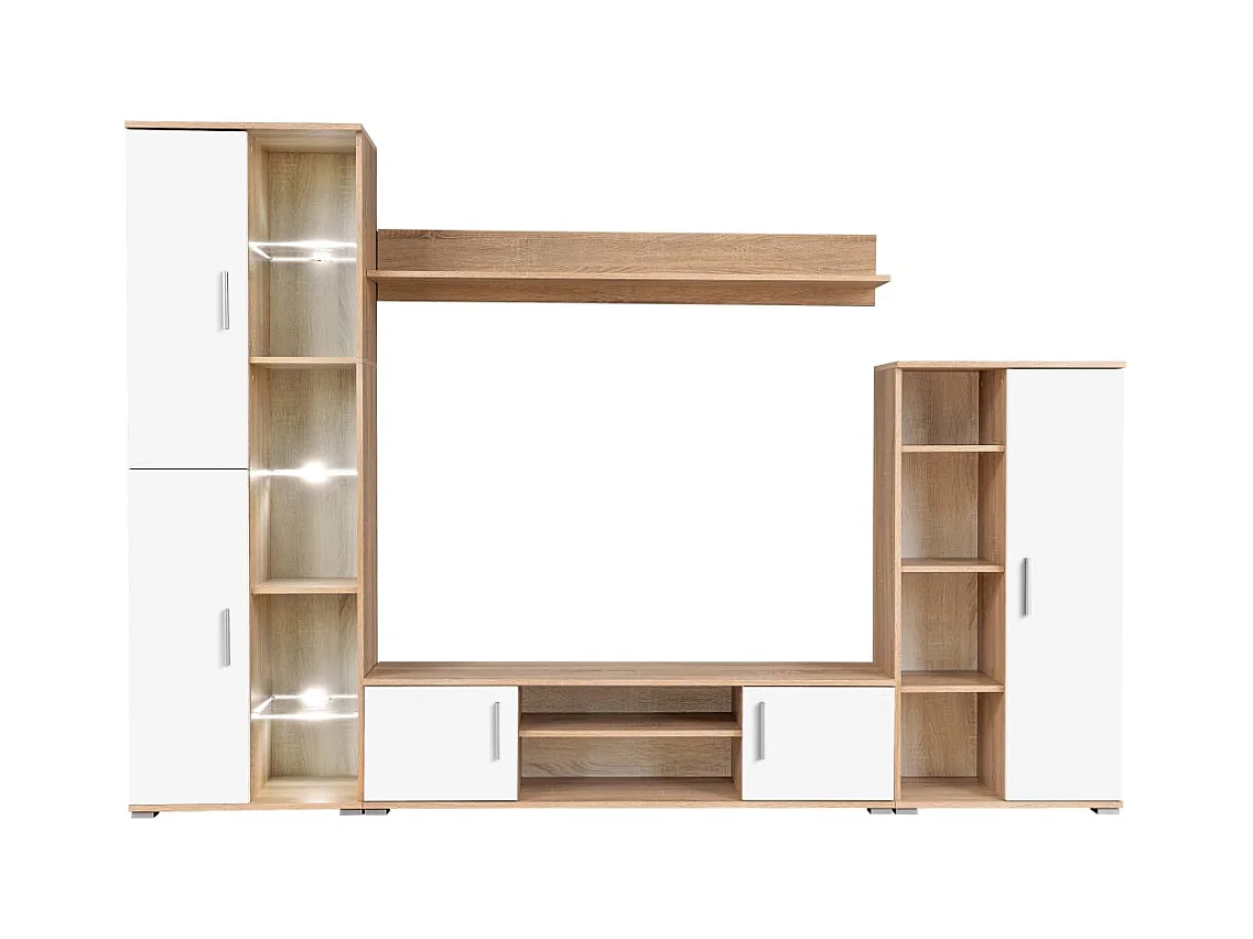 Paul-Baptiste Meuble TV mural avec lumière LED Chêne sonoma et blanc