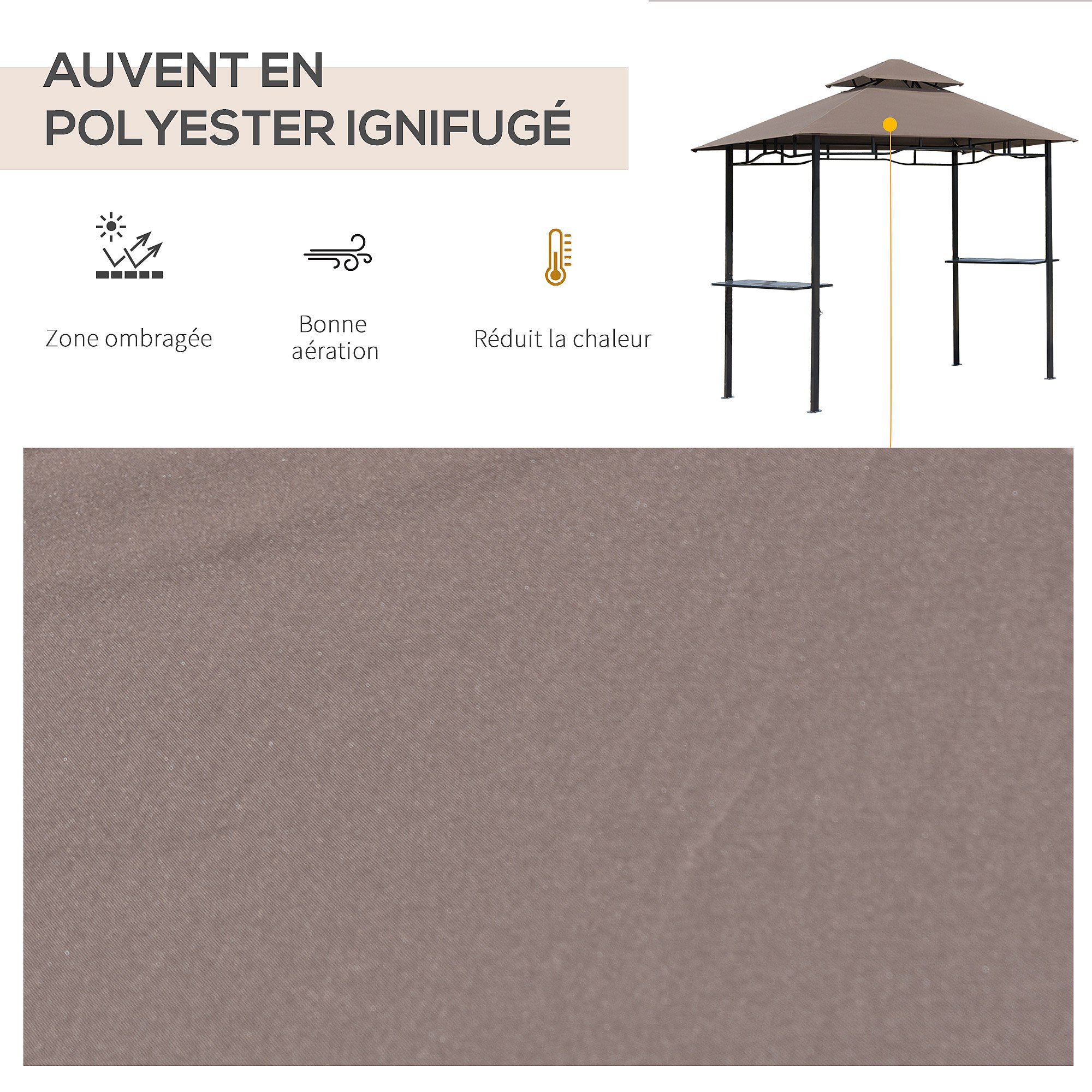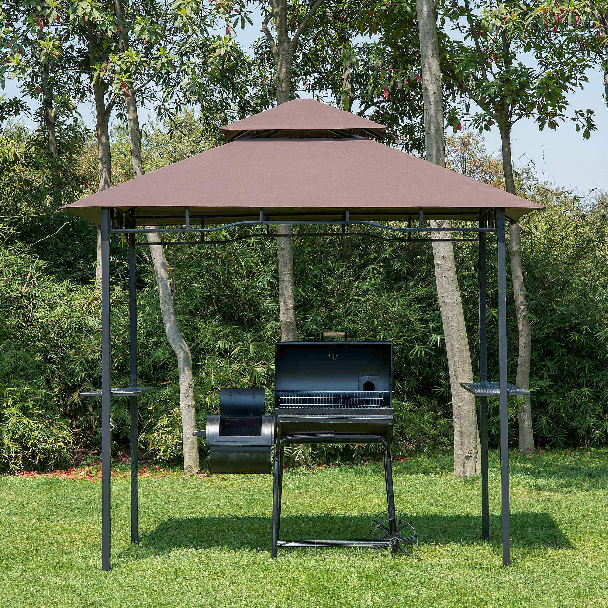 Pavillon abri tonnelle de jardin pour barbecue double toit 2 tablettes incluses tissu polyester acier 2,45 x 1,48 x 2,55 m chocolat