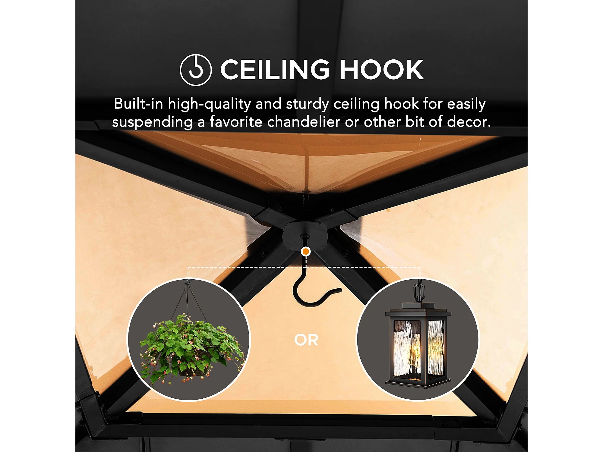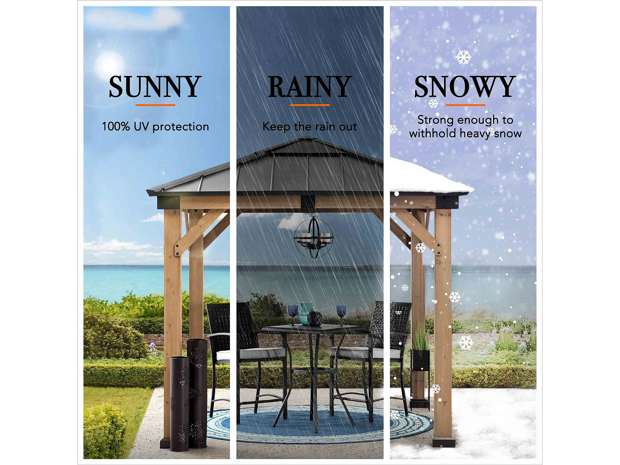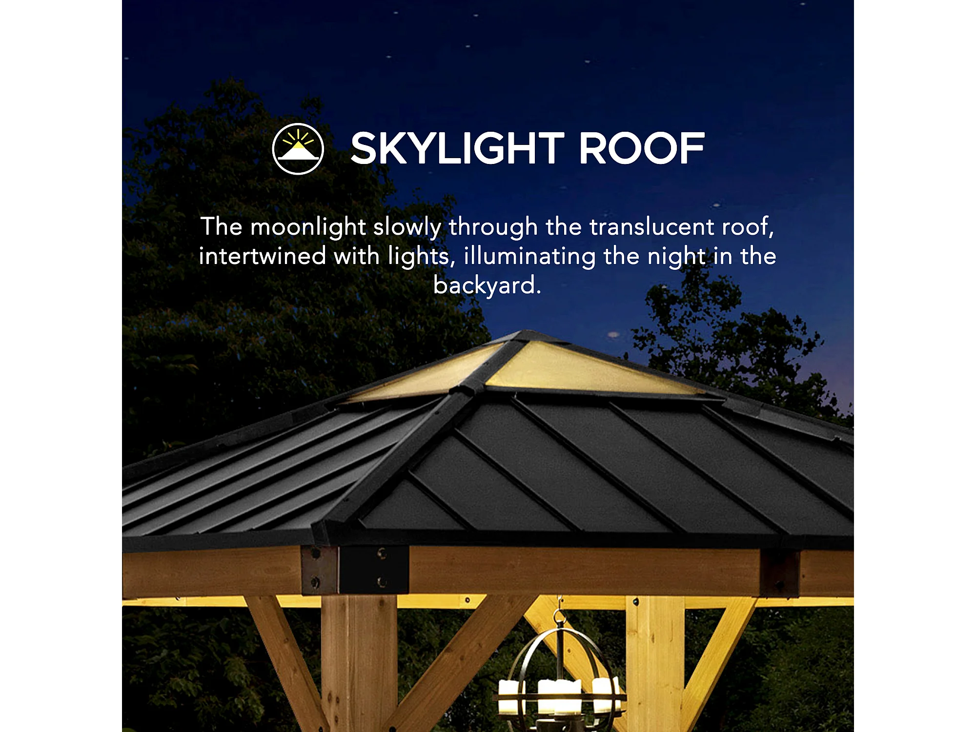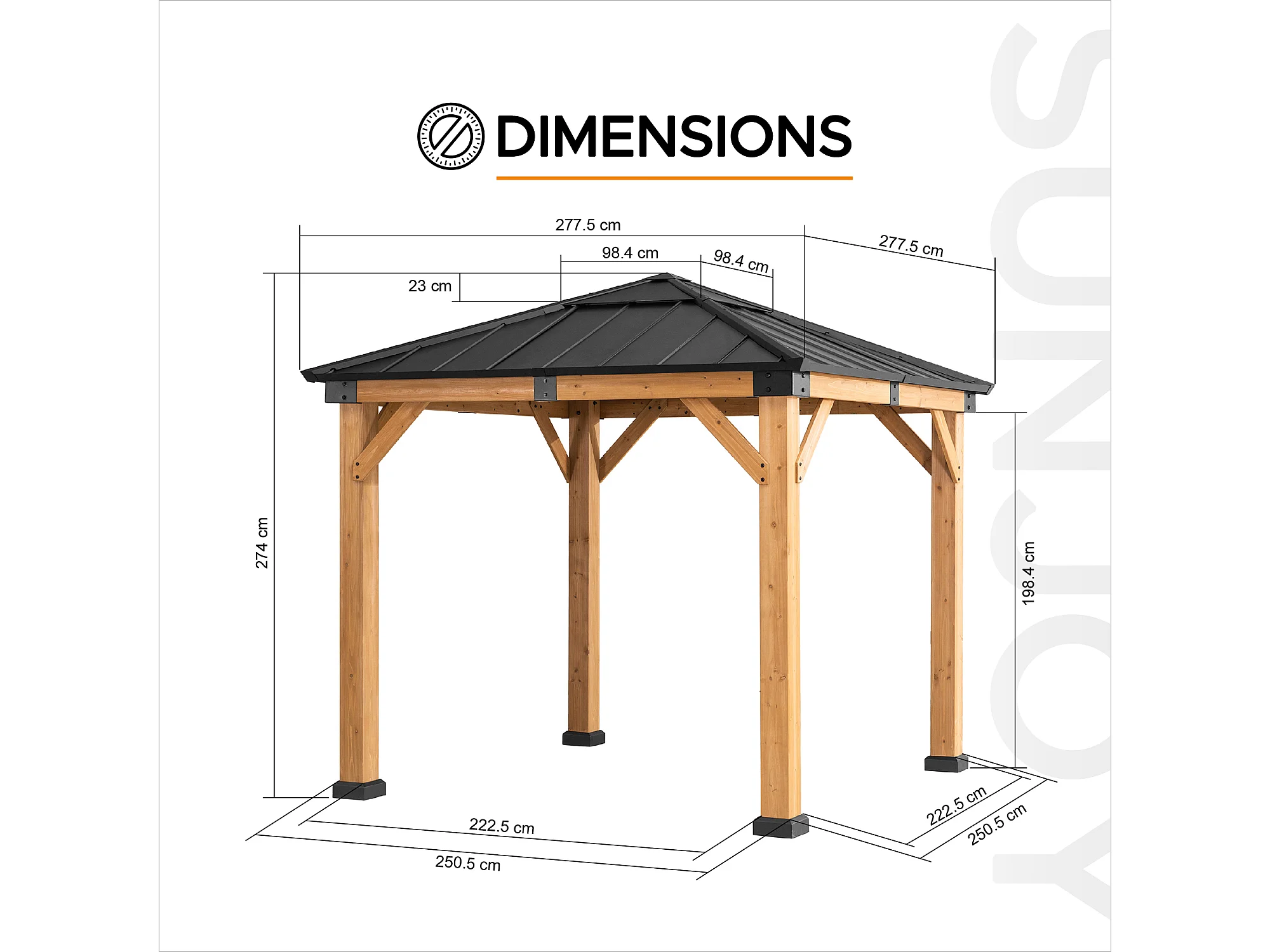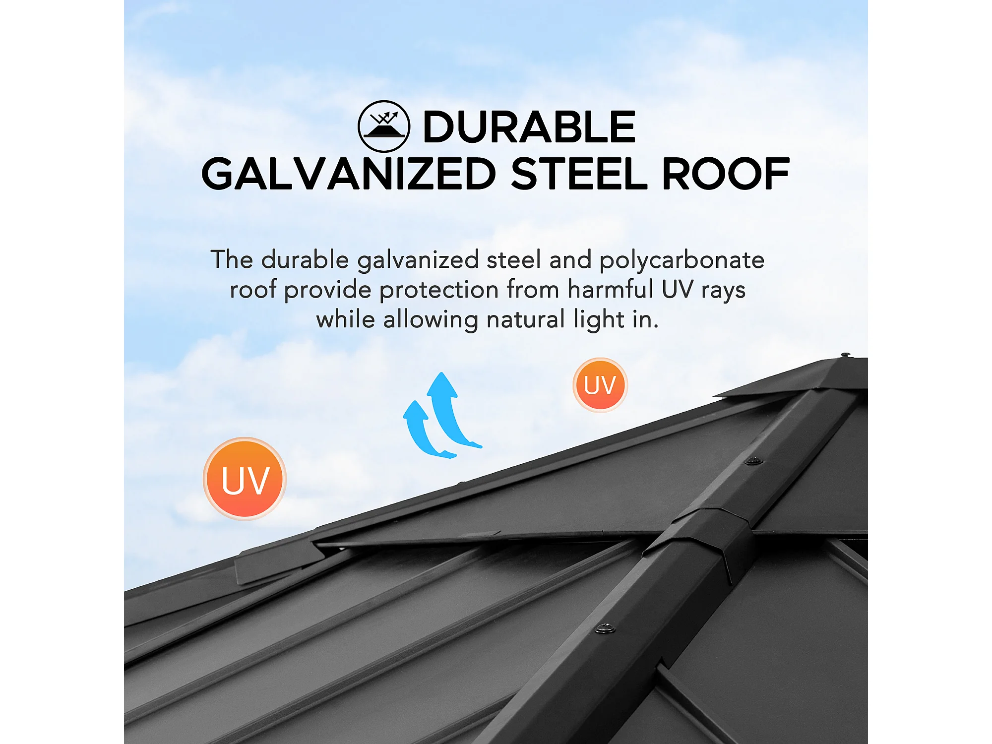 Pavillon en bois avec cadre en acier anthracite et lucarne en polycarbonate RAPI 277.5cm x 277.5cm