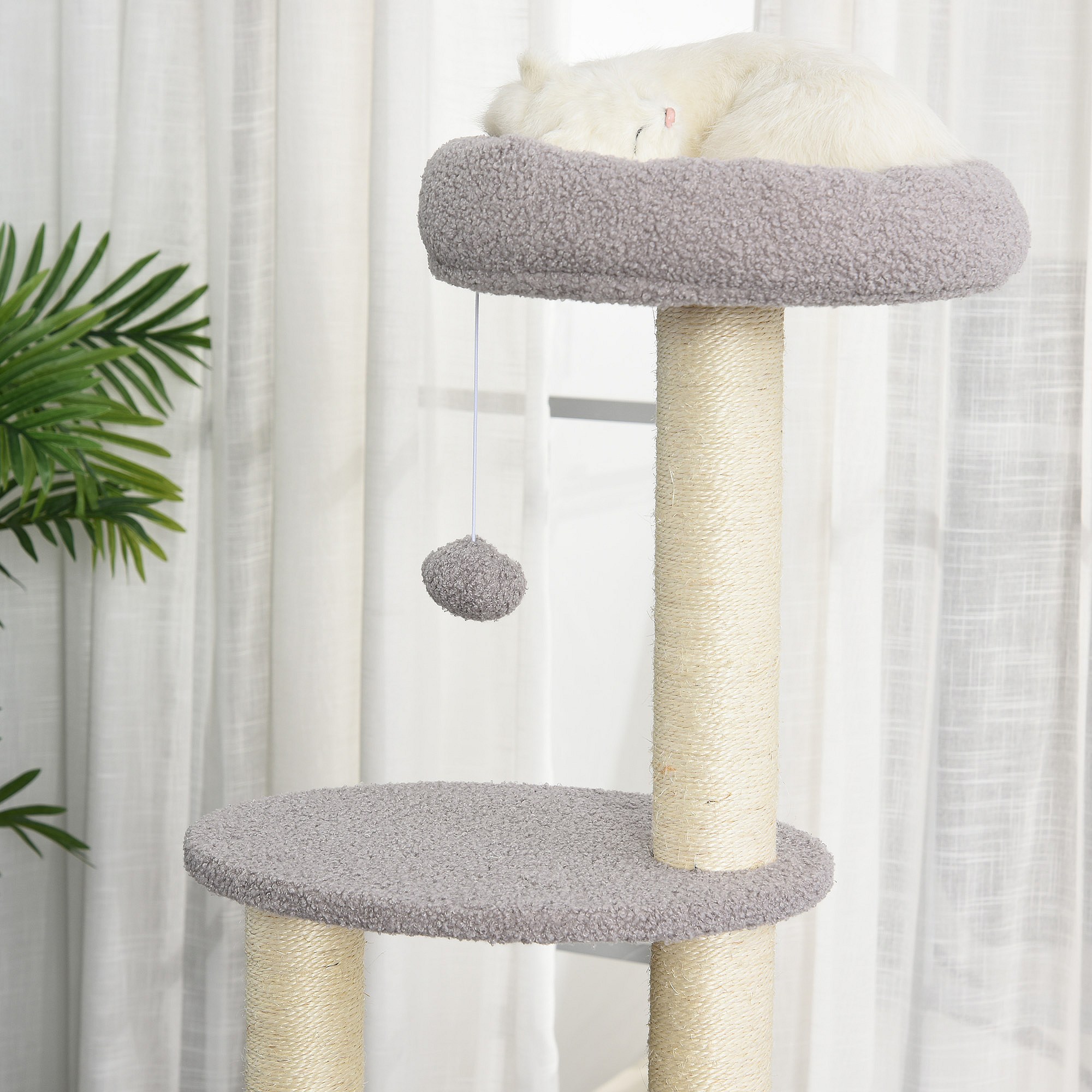 Arbre à chat griffoir grattoir design jeu boule suspendue + plateforme peluche sisal naturel gris