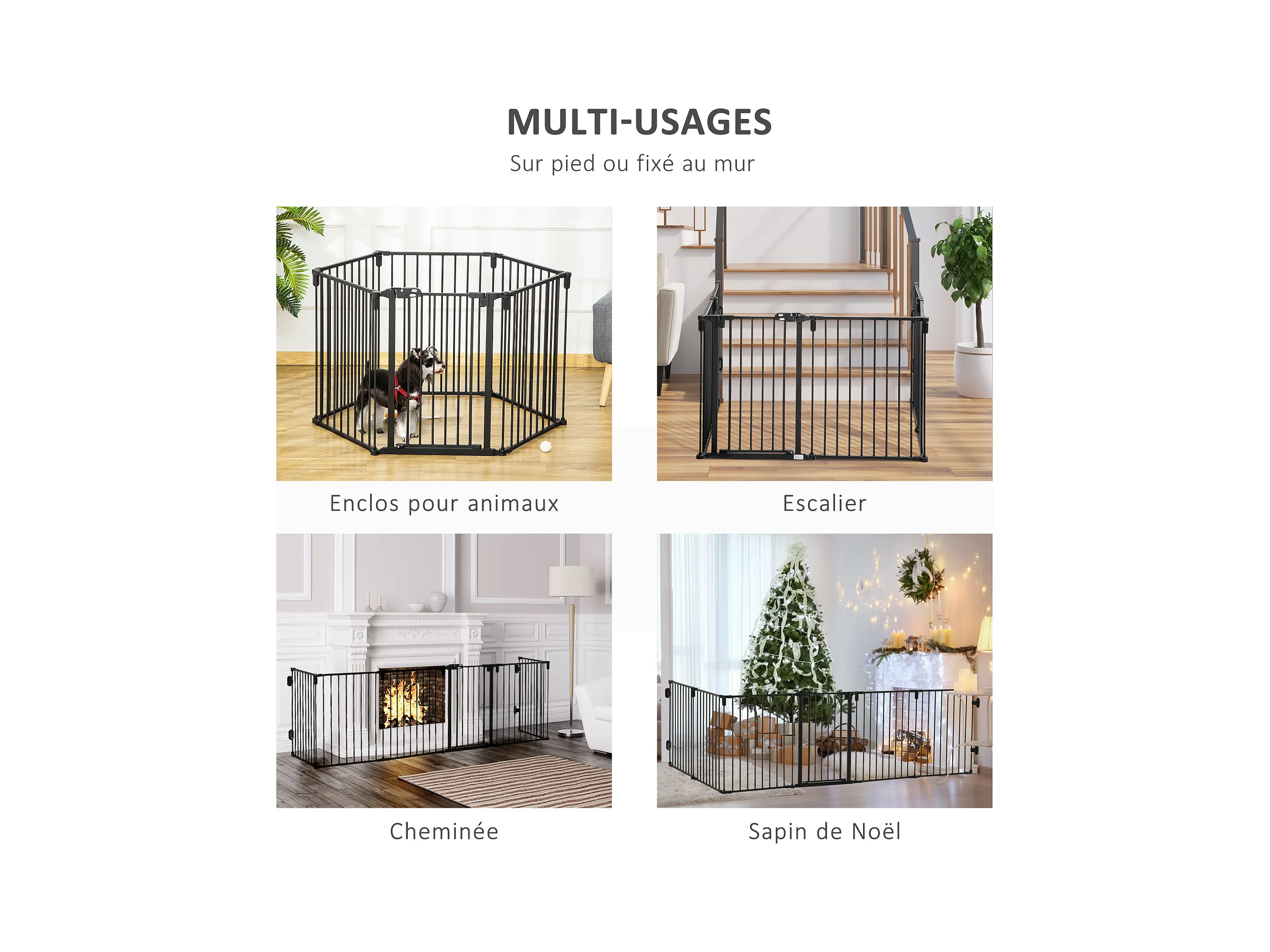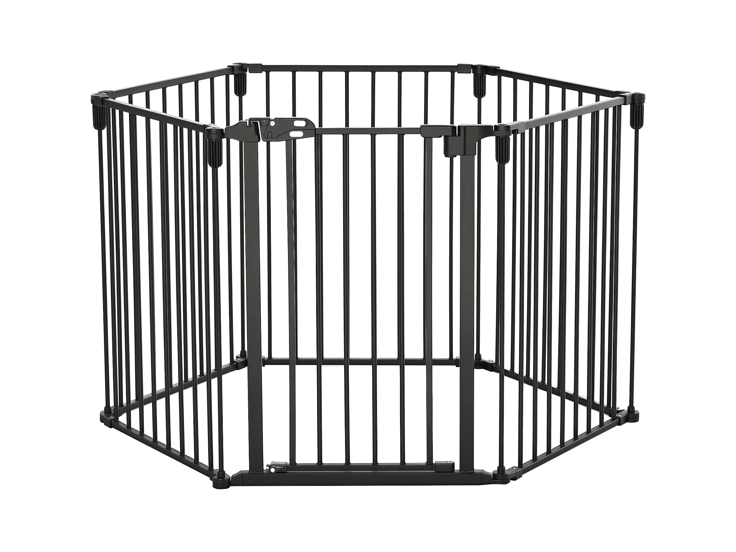 PawHut Barrière de sécurité - parc enclos chien modulable pliable - porte verrouillable - 6 panneaux acier et PP - dim. 362,5L max. x 76H cm noir