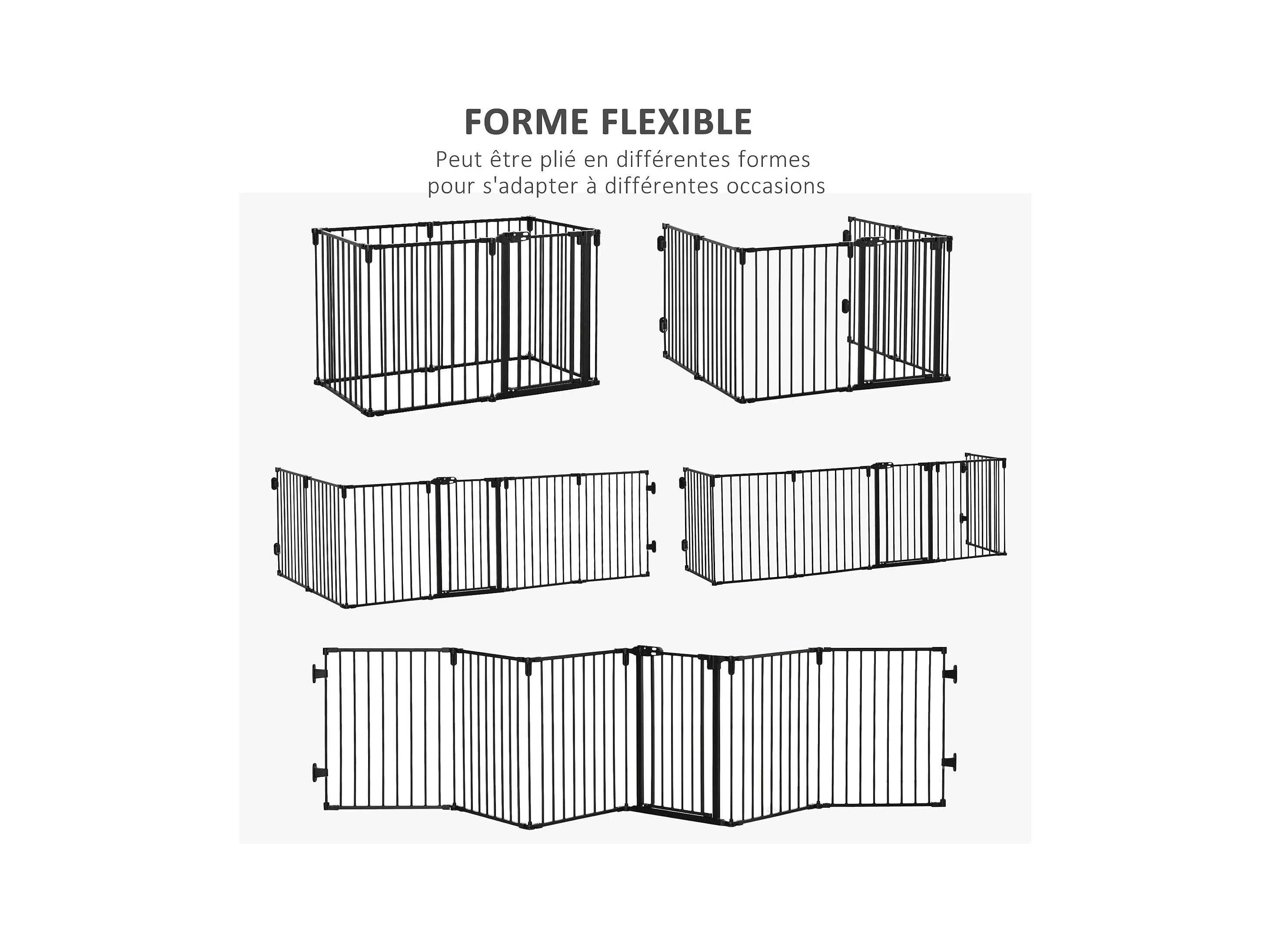 Barrière de sécurité - parc enclos chien modulable pliable - porte verrouillable - 8 panneaux acier et PP - dim. 482,5L max. x 76H cm noir