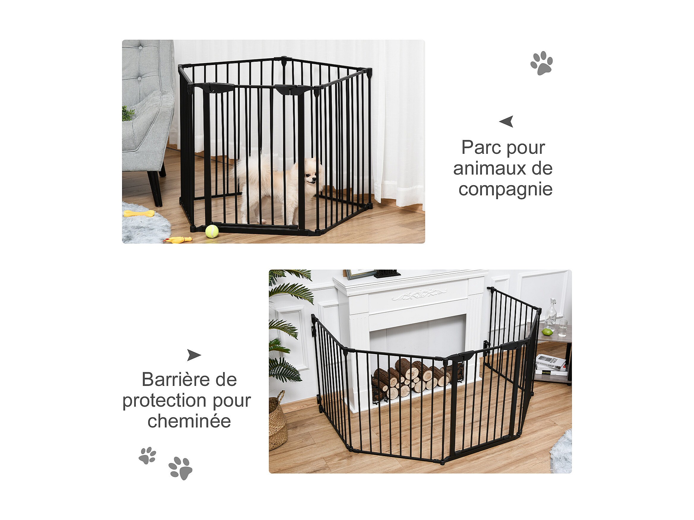 Barrière de sécurité parc enclos chien modulable pliable porte verrouillable intégrée 5 panneaux en métal 300L max. x 74,5H cm métal PP noir