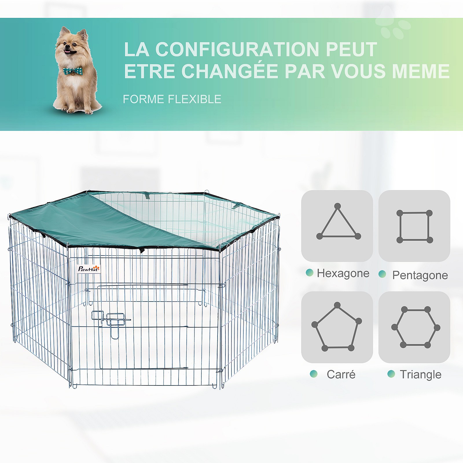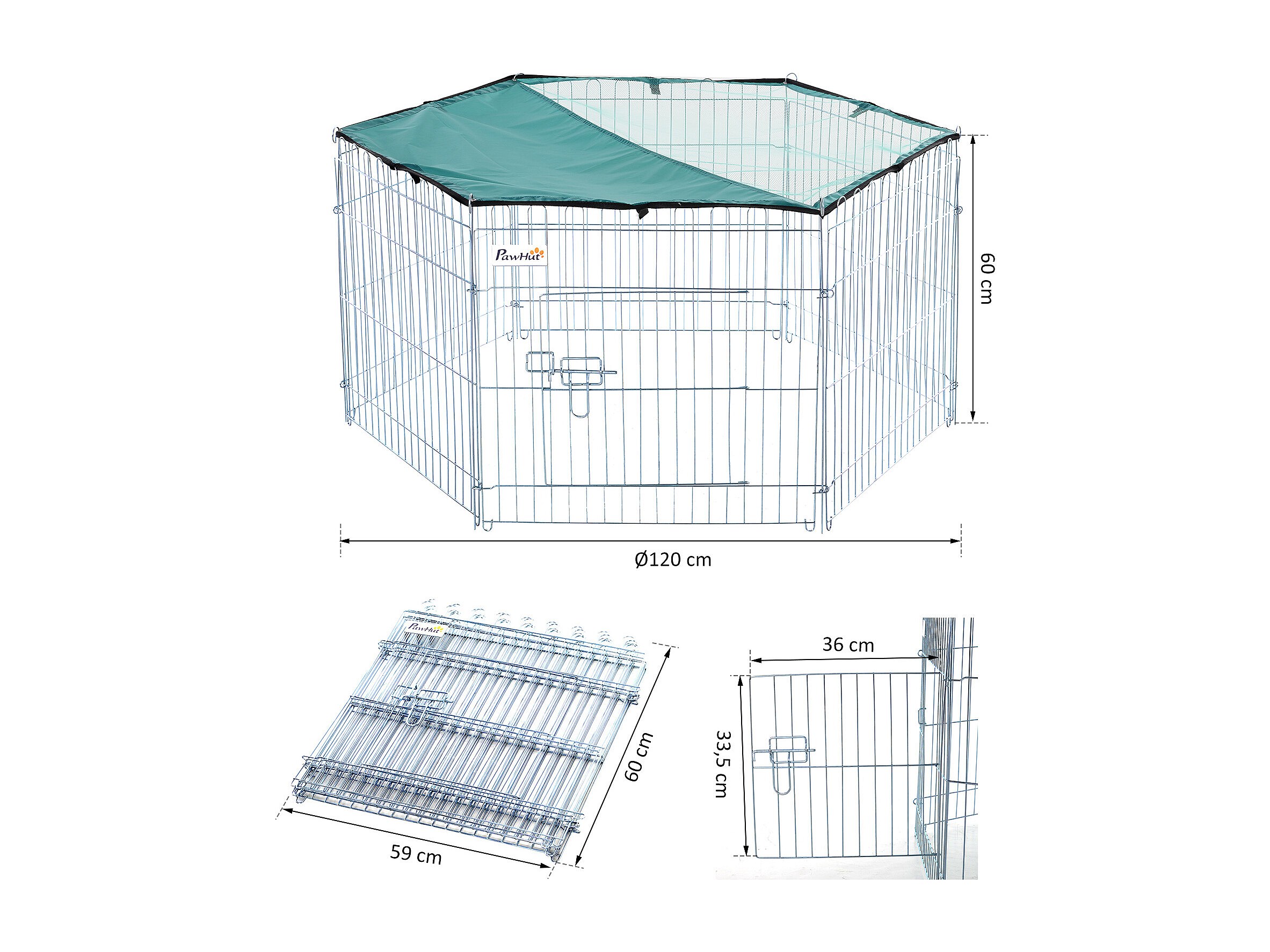 PawHut Parc enclos modulable Acier 6 Panneaux et 1 Porte pour Chiens Ø 120 x 60 cm Gris Métal vert