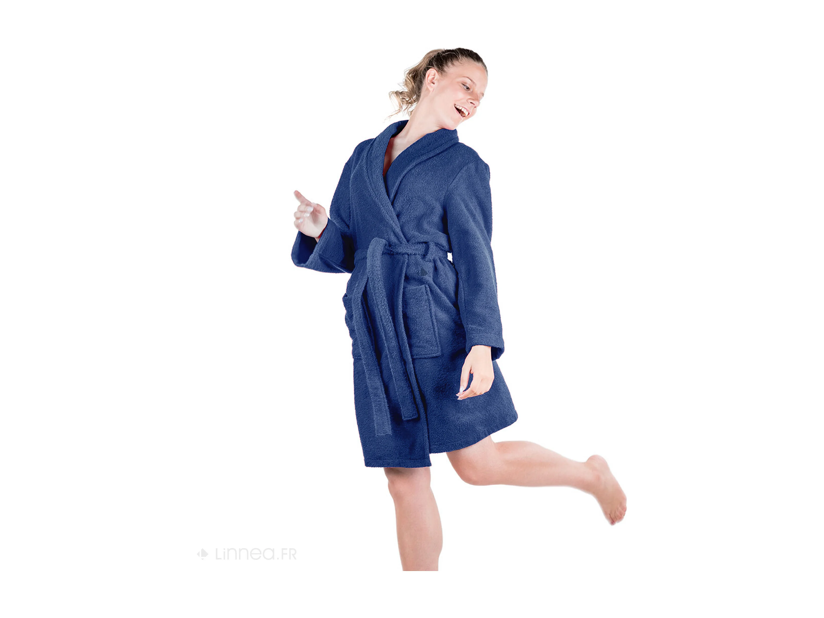 Peignoir col châle adulte ALPHA coton taille L bleu marine