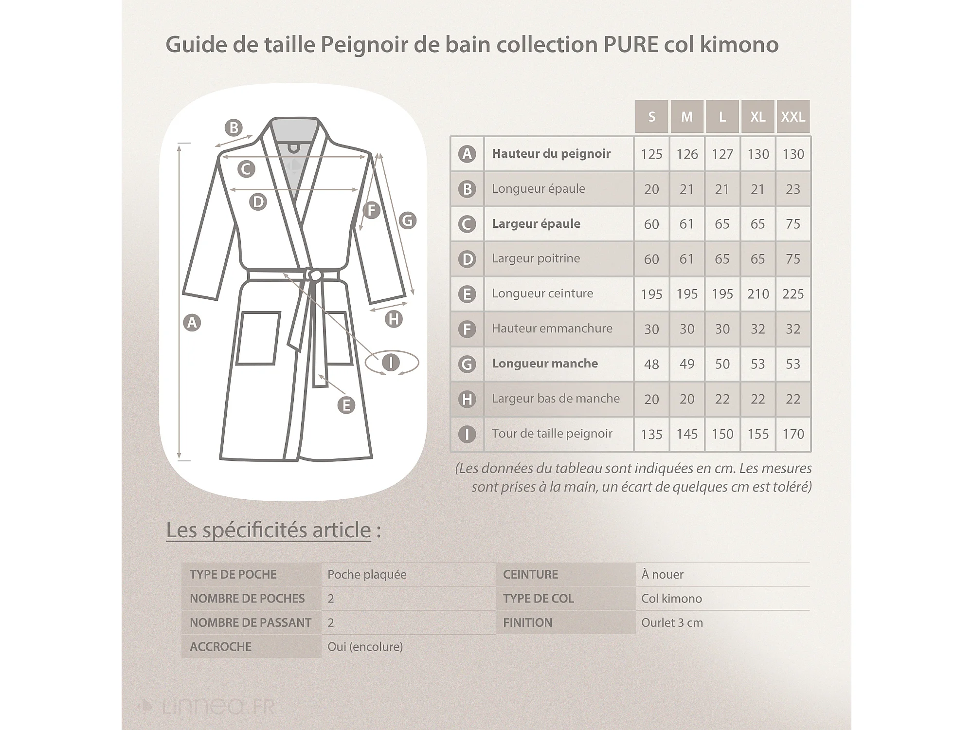 Peignoir col châle adulte ALPHA coton taille M ivoire