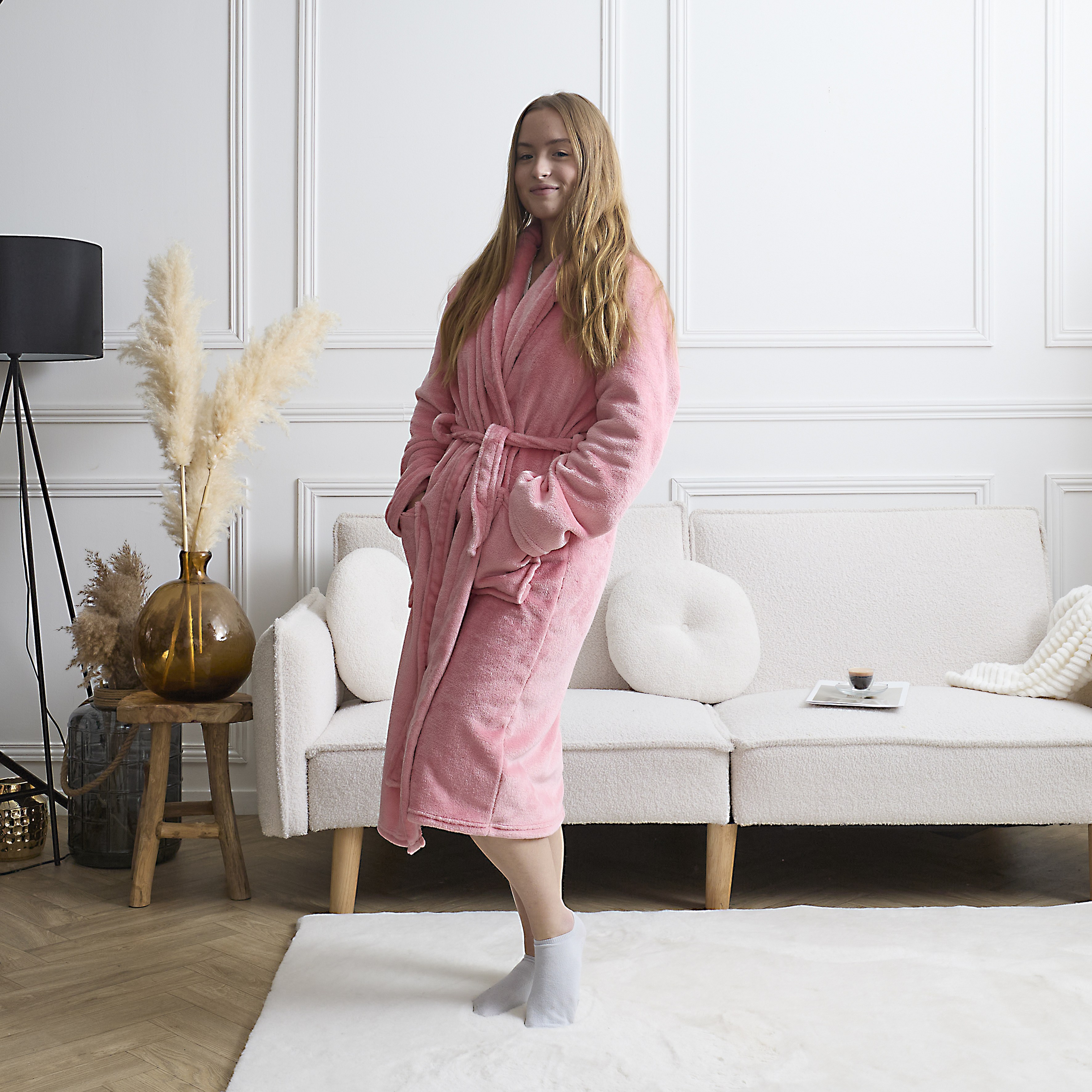 Peignoir Sherpa Grl Pwr Rose, Blanc