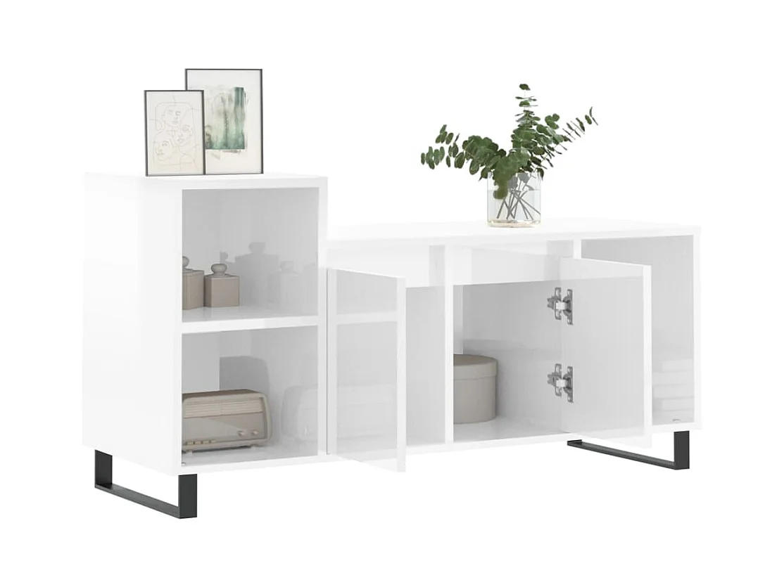 Erinor Meuble TV Blanc brillant 100x35x55 cm Bois d'ingénierie