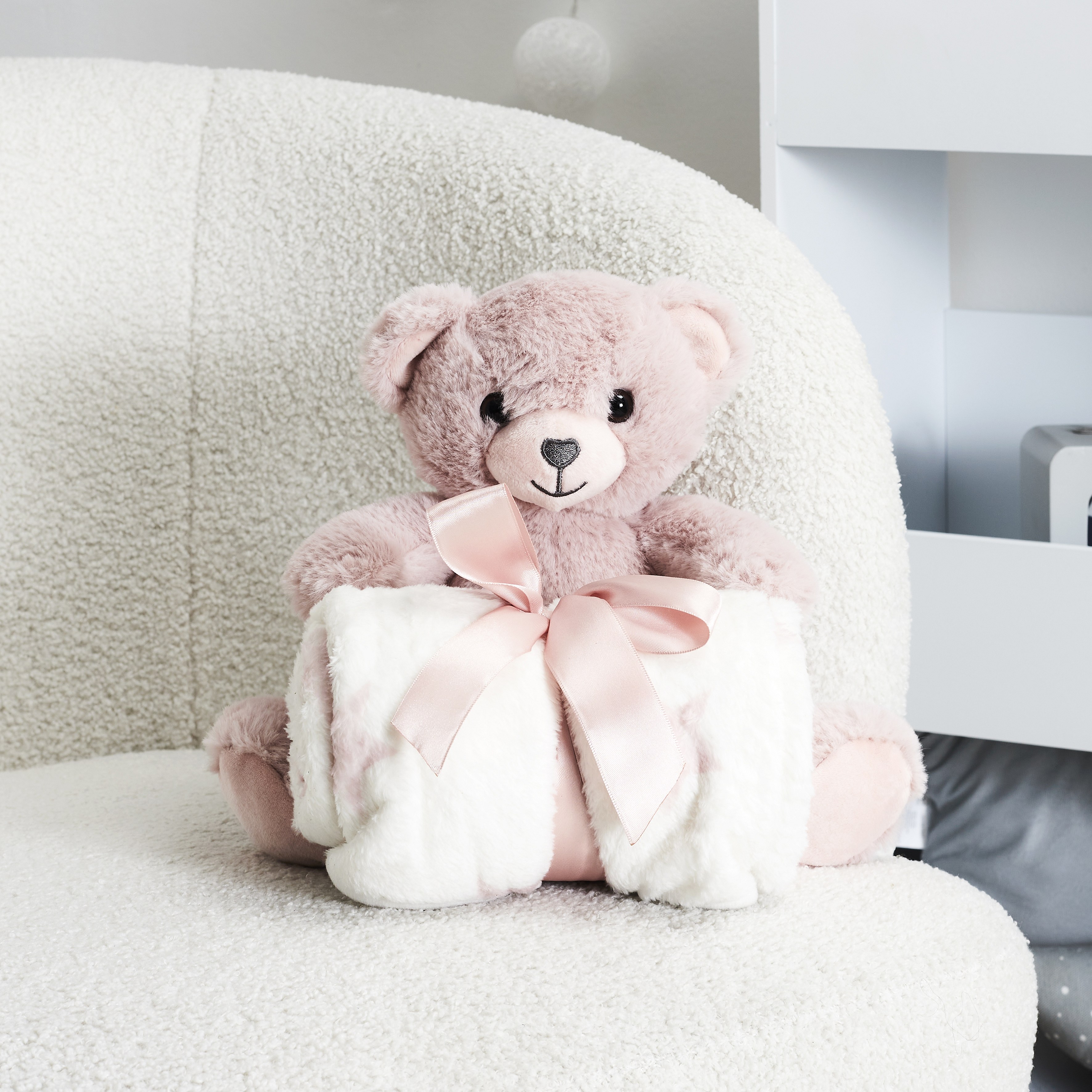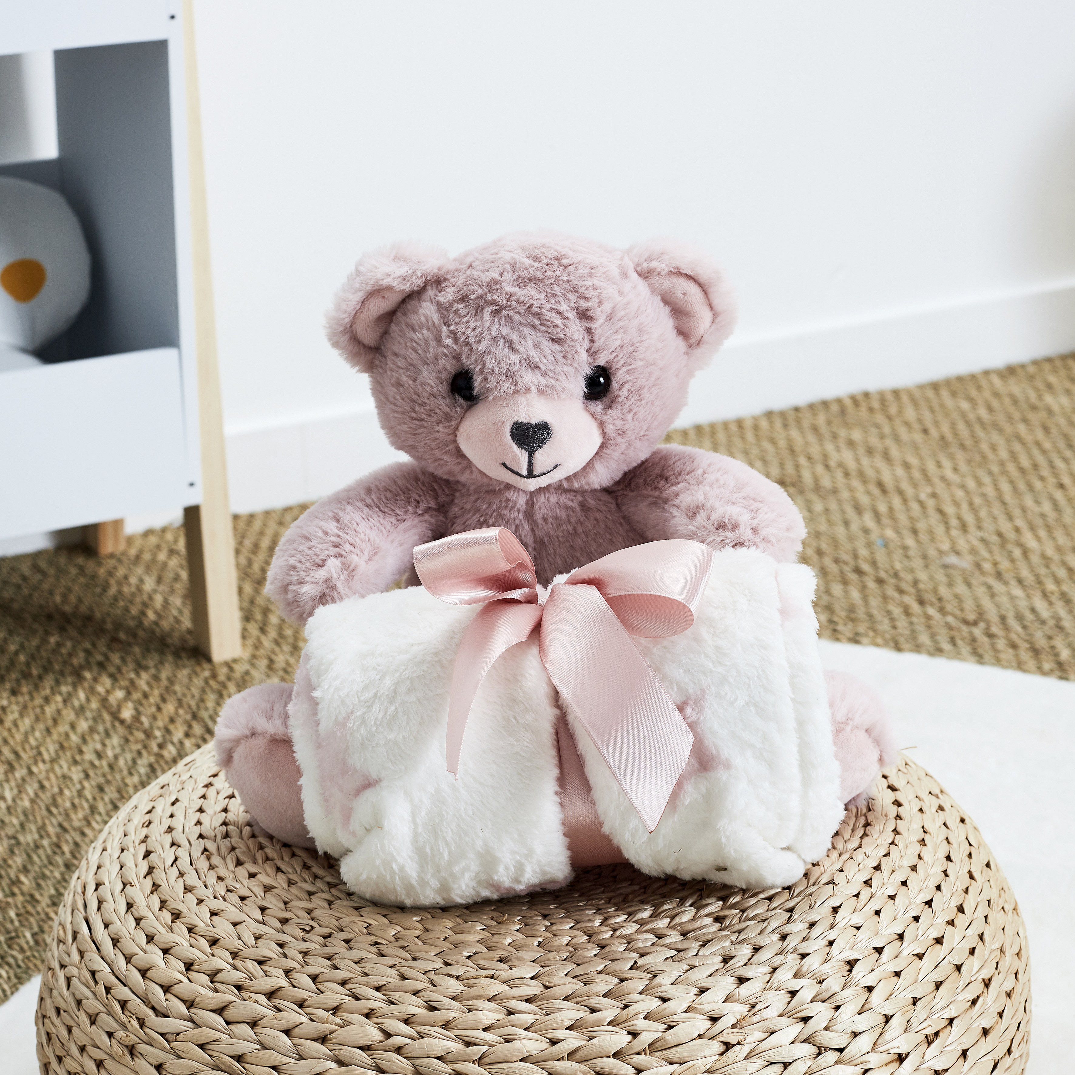 Peluche Ours 20cm Plaid 70x70cm Rose