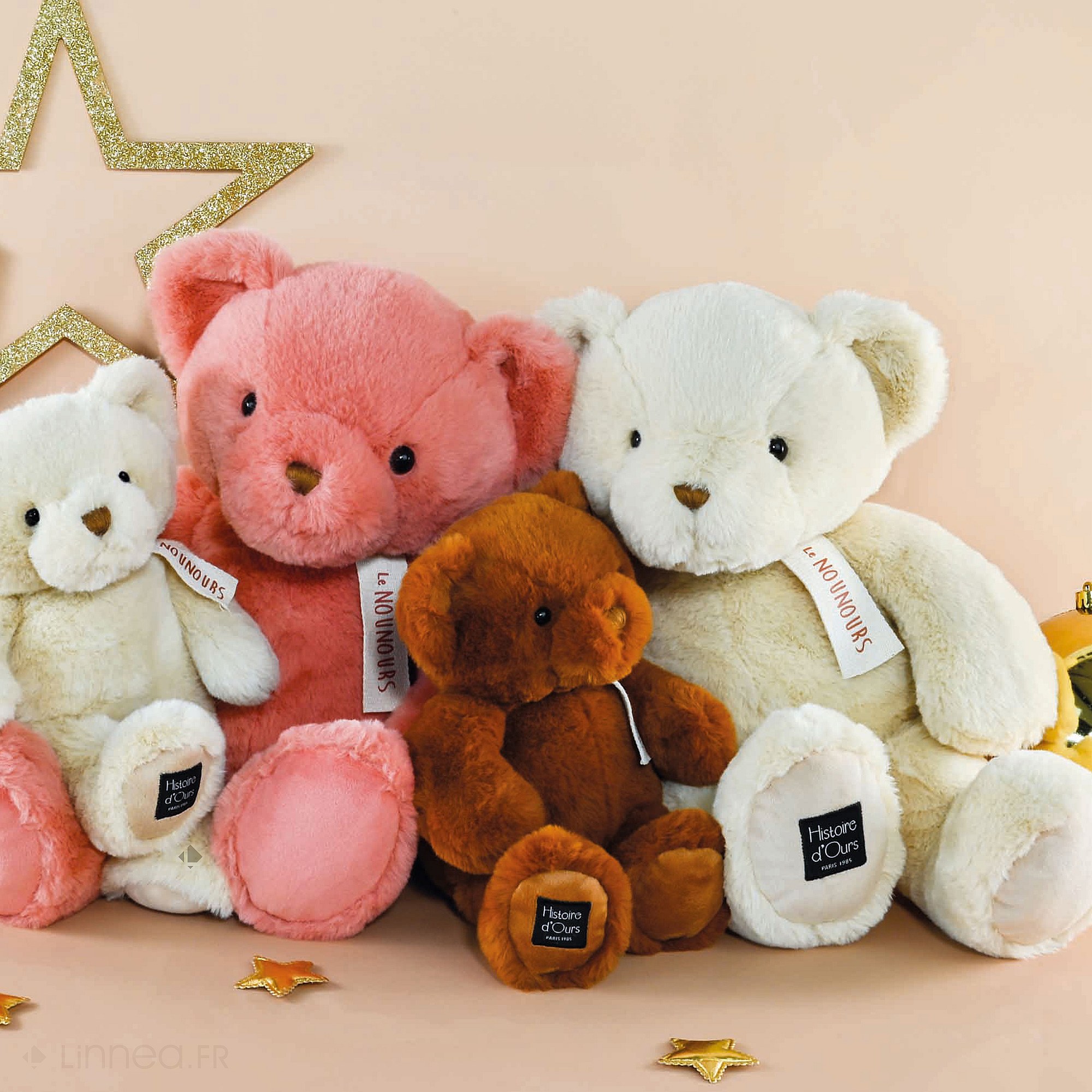 Peluche ours 28 cm polyester collection LE NOUNOURS marron cappuccino