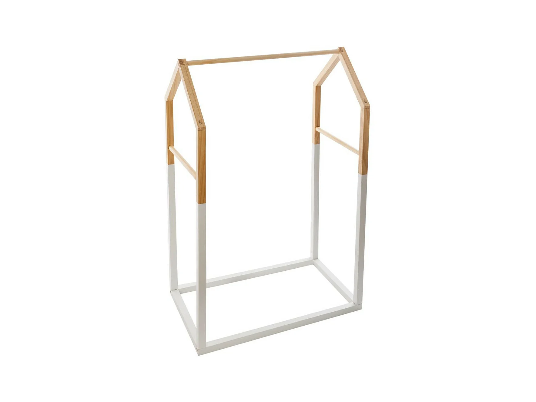 Porte-manteau TRENTO – Bambou naturel ou métal noir-blanc-Blanc