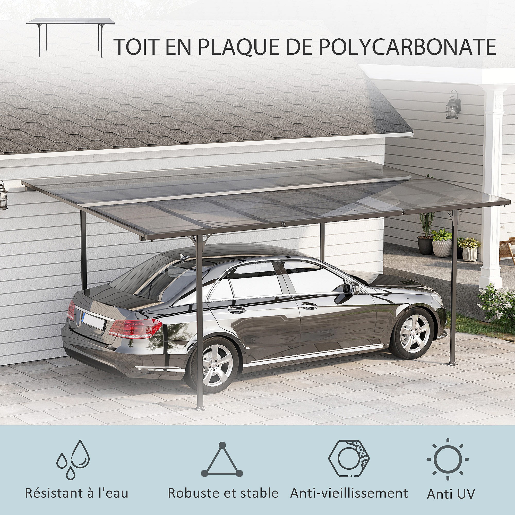 Pergola adossable rigide acier alu. toit polycarbonate dim. 5L x 2,99l x 2,23H m gris