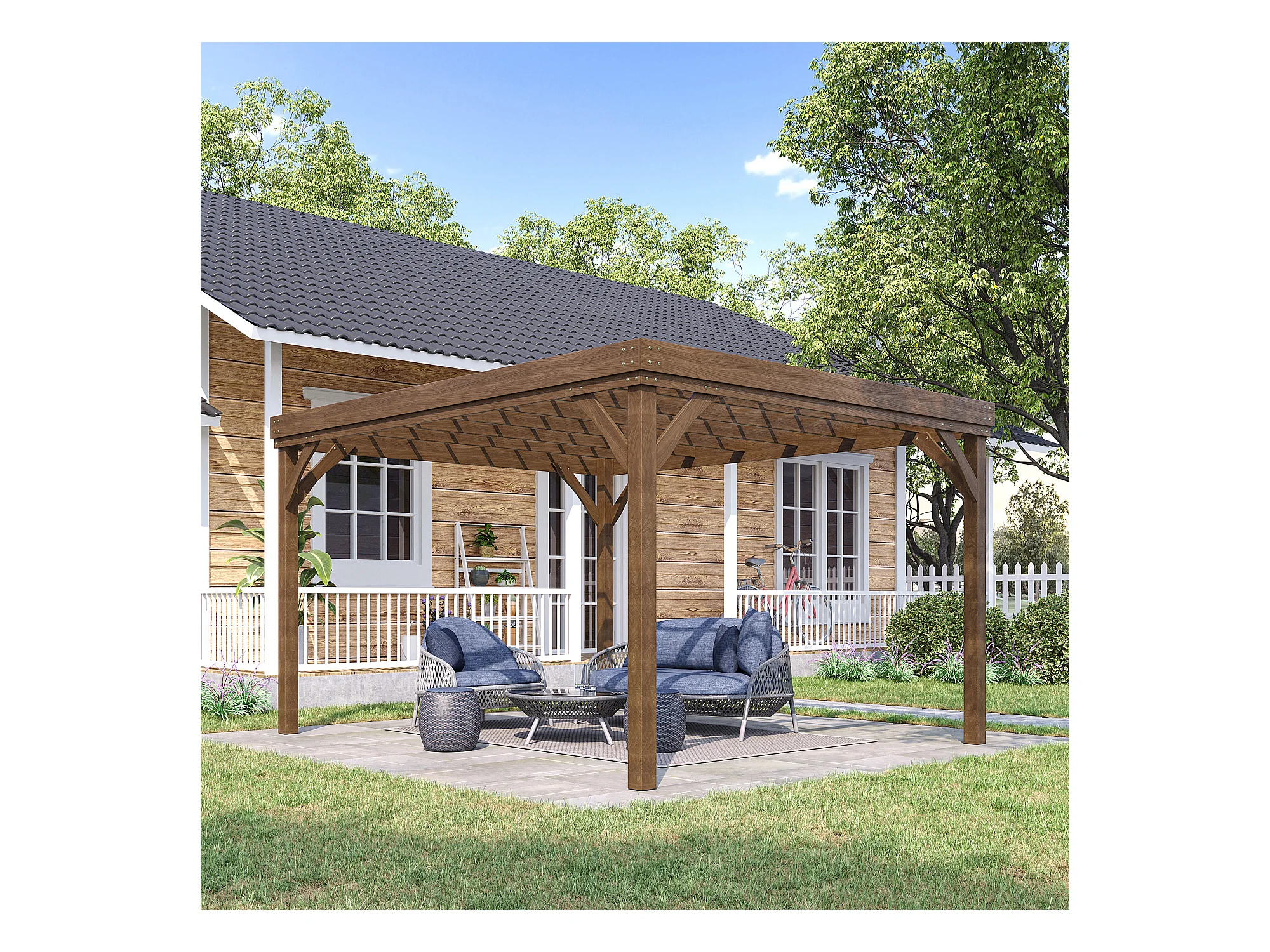 Pergola autoportante style rustique chic - Toit terrasse à décorer - dim. 3,65L x 3l x 2,15H m - bois sapin pré-huilé