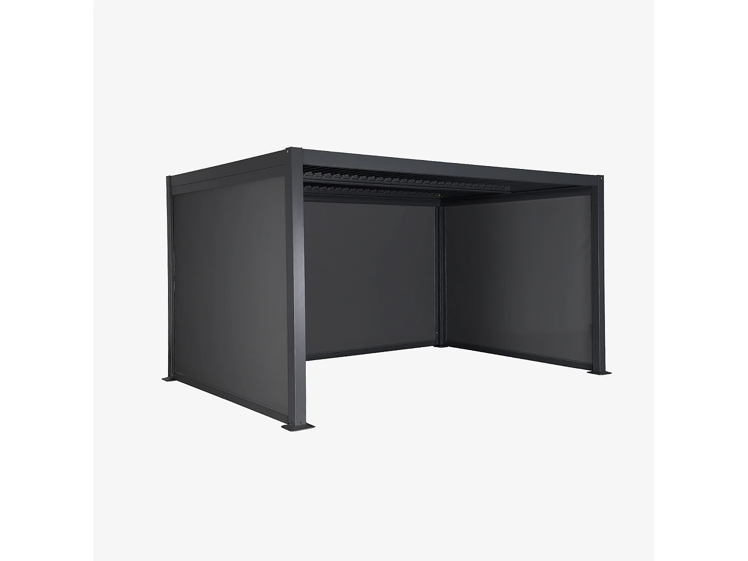 Pergola bioclimatique aluminium et acier 3x4m lames orientables + 2 stores 3m + 1 store 4m PALACE anthracite