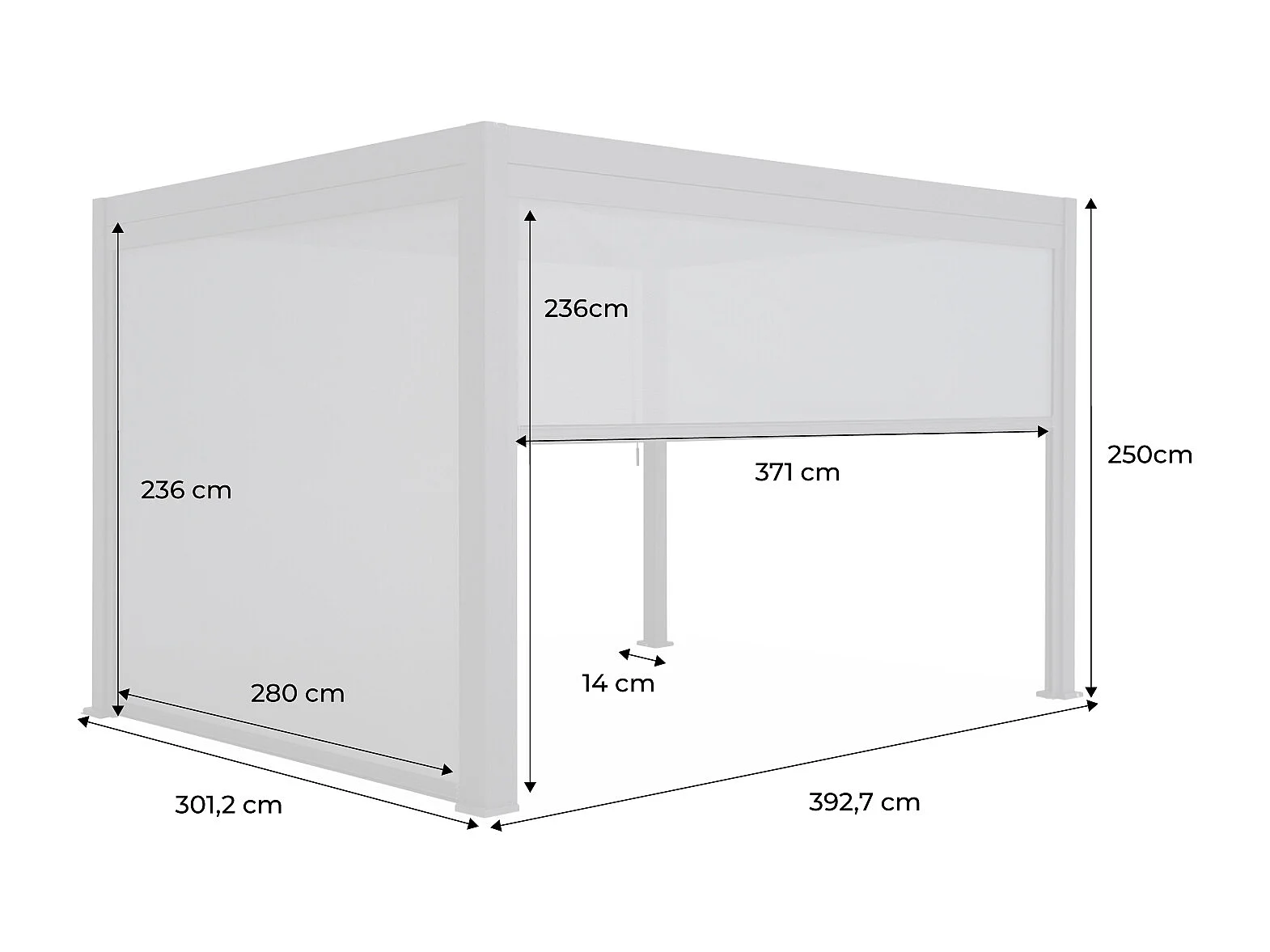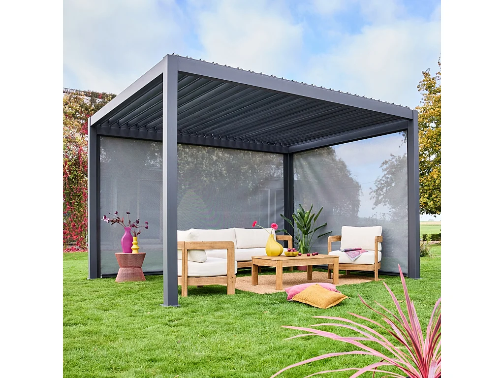 Pergola Bioclimatique gris anthracite 300 x 400cm. aluminium à lames orientables + store 300cm + store 400cm