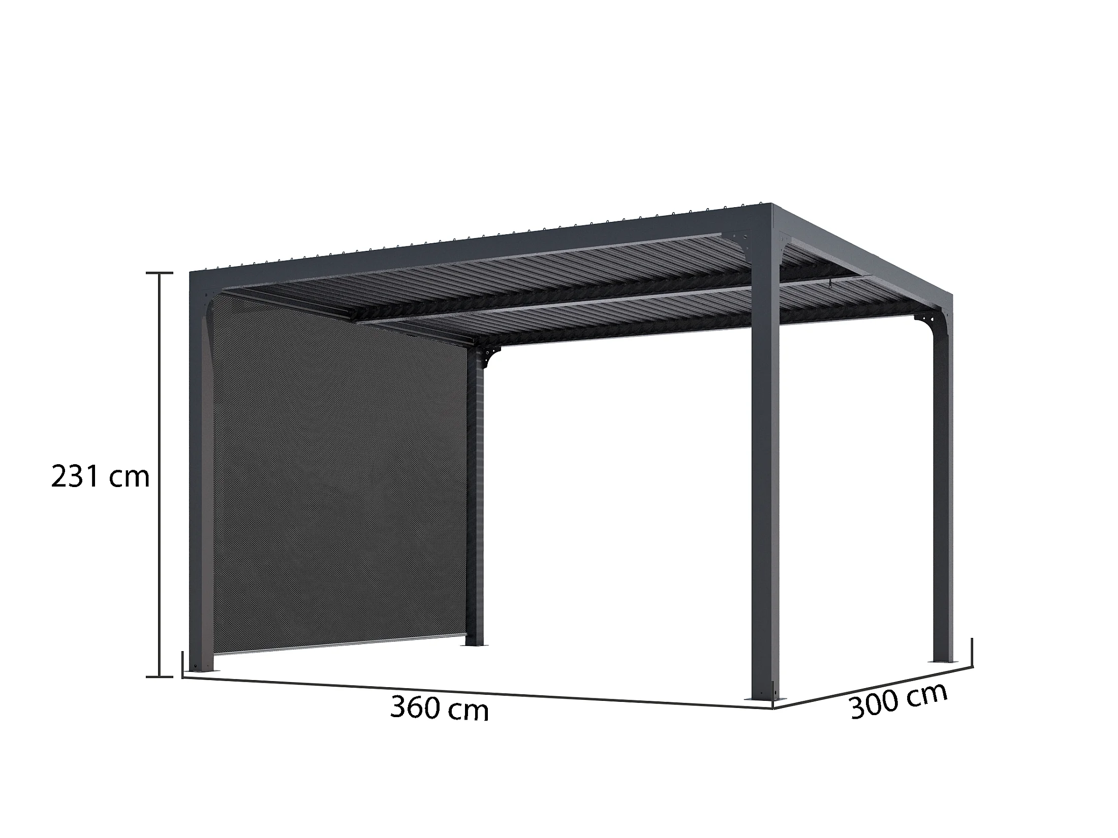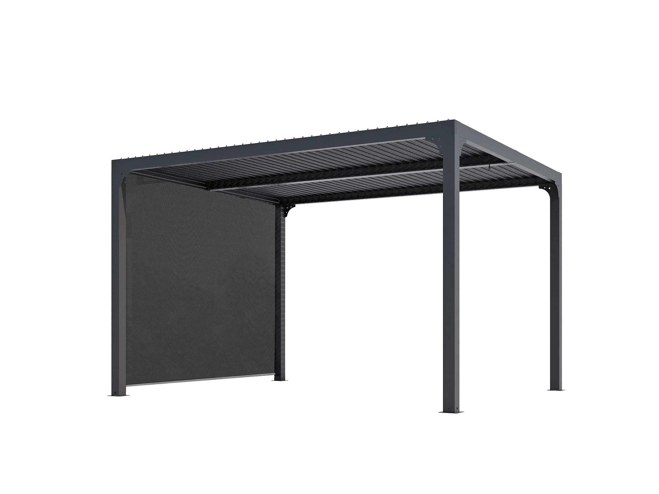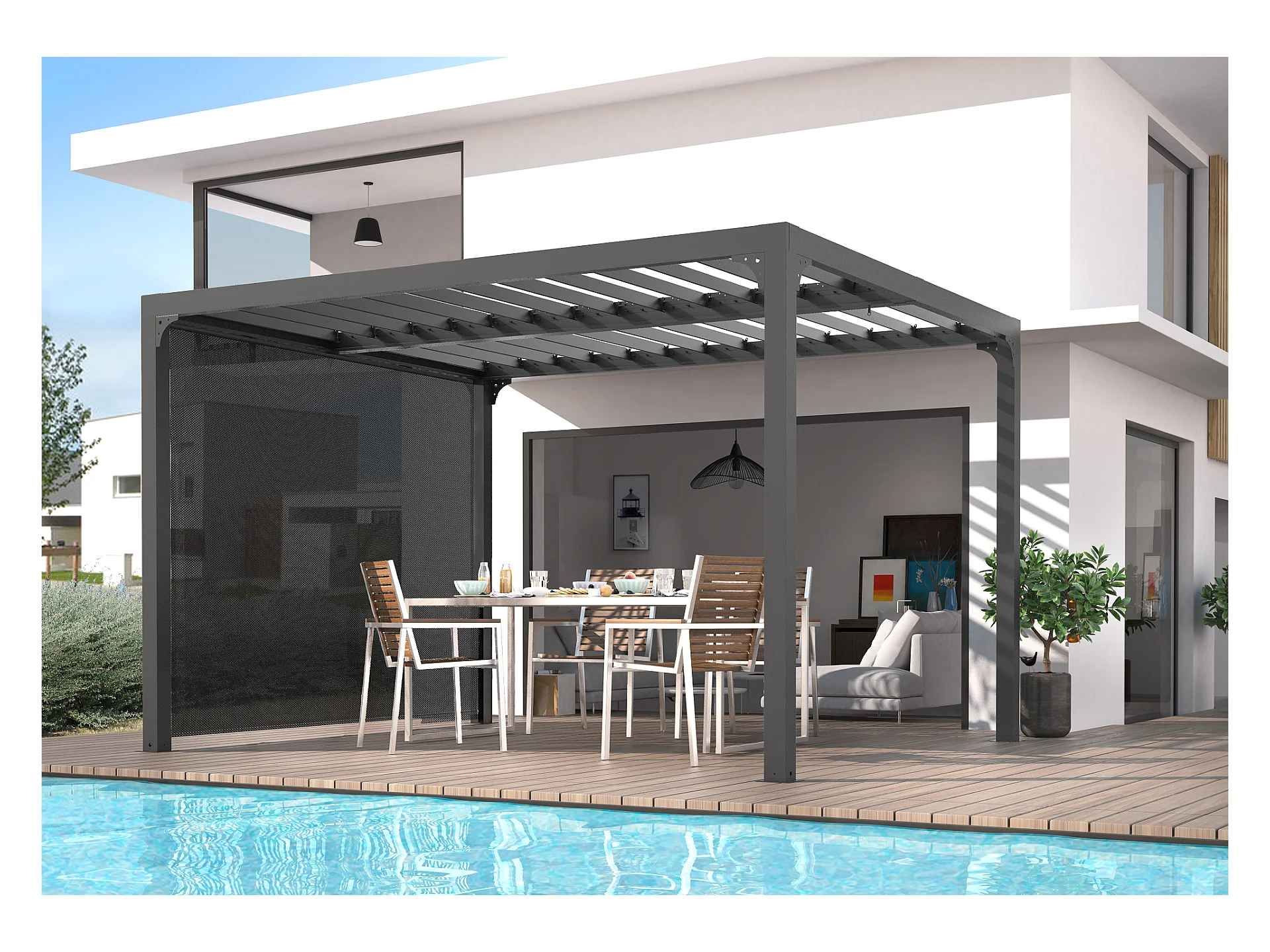 Pergola bioclimatique structure ALUMINIUM ouverture manuelle avec rideau manuel coloris gris pour côté 3 m