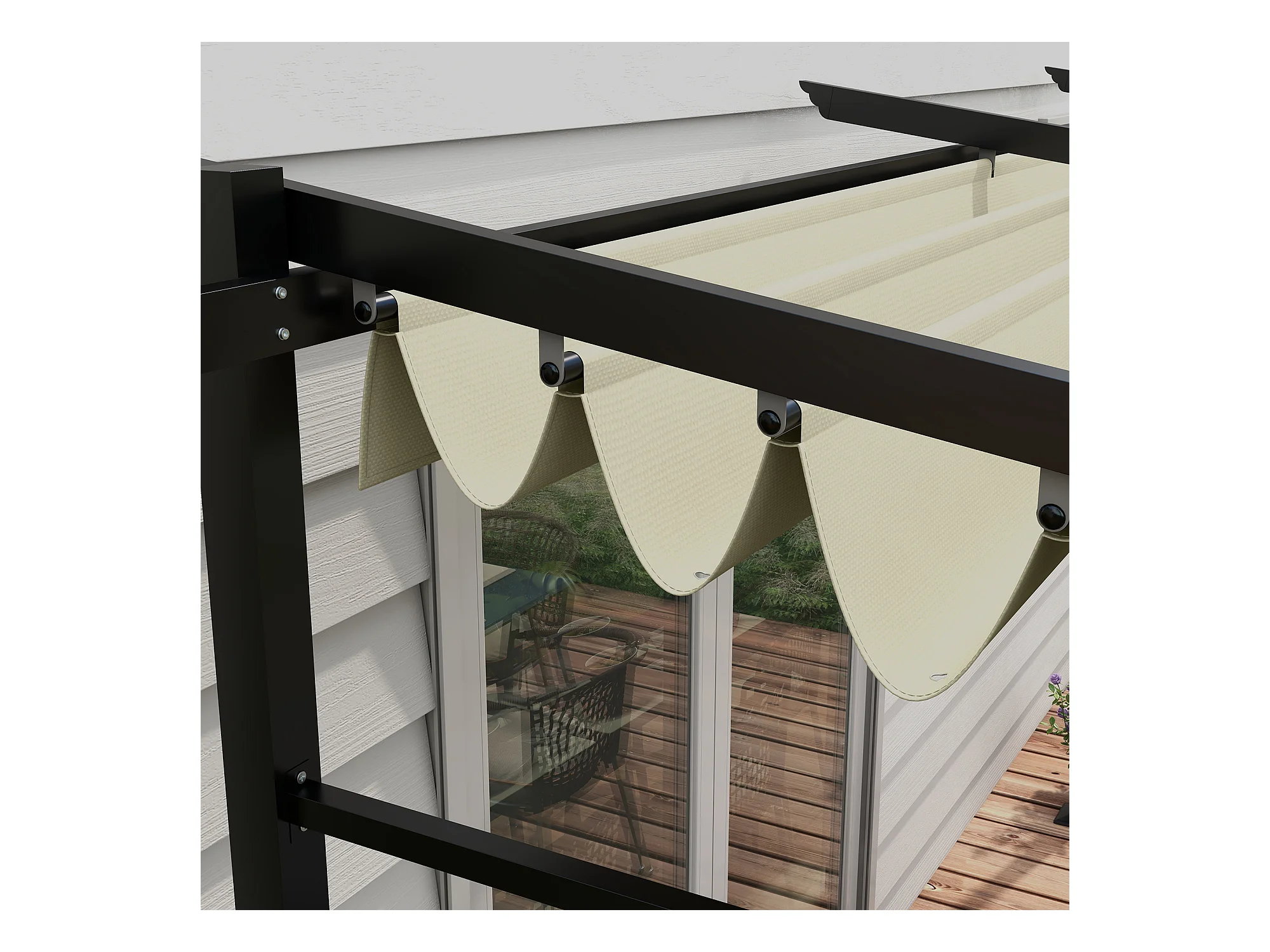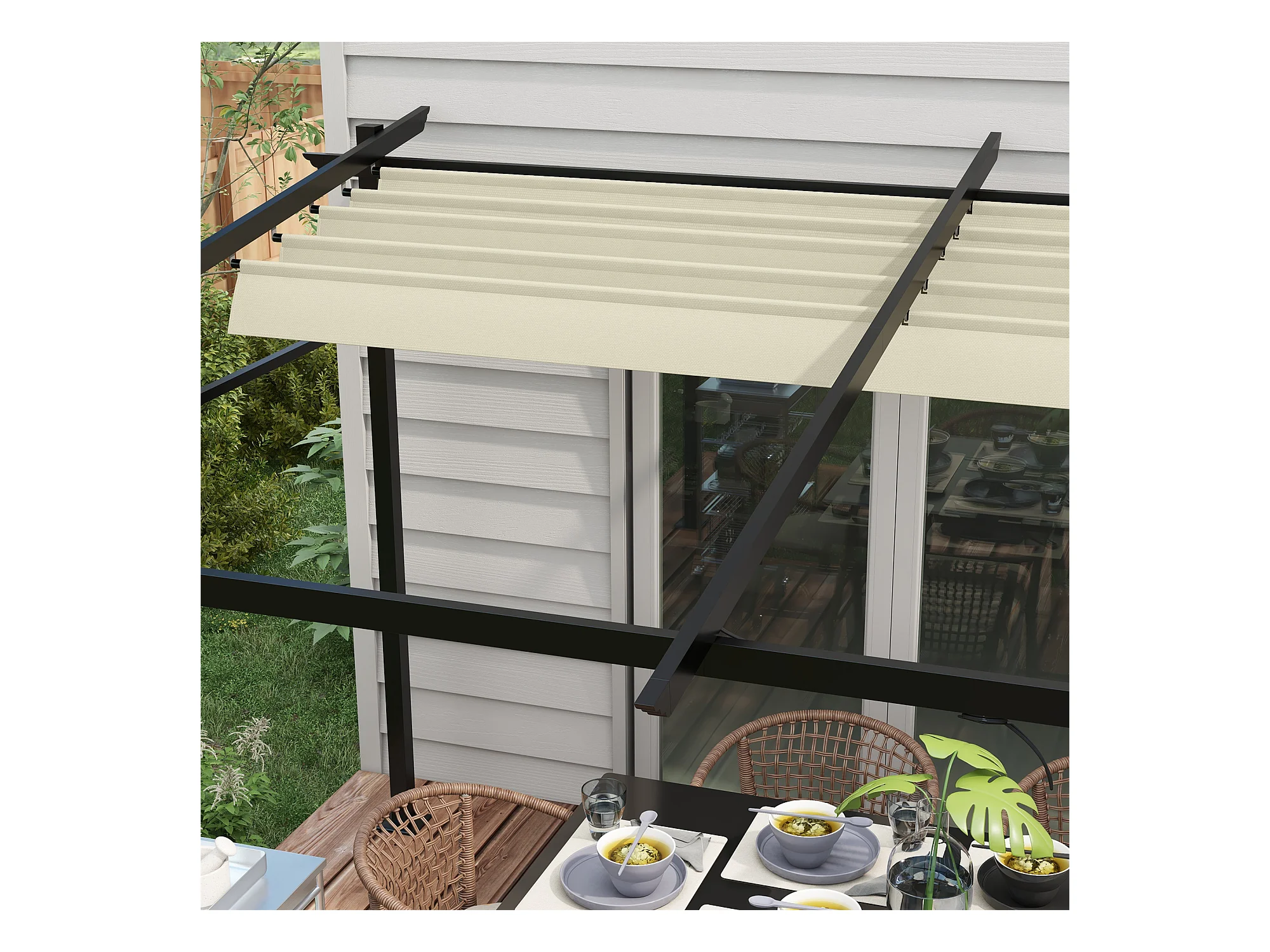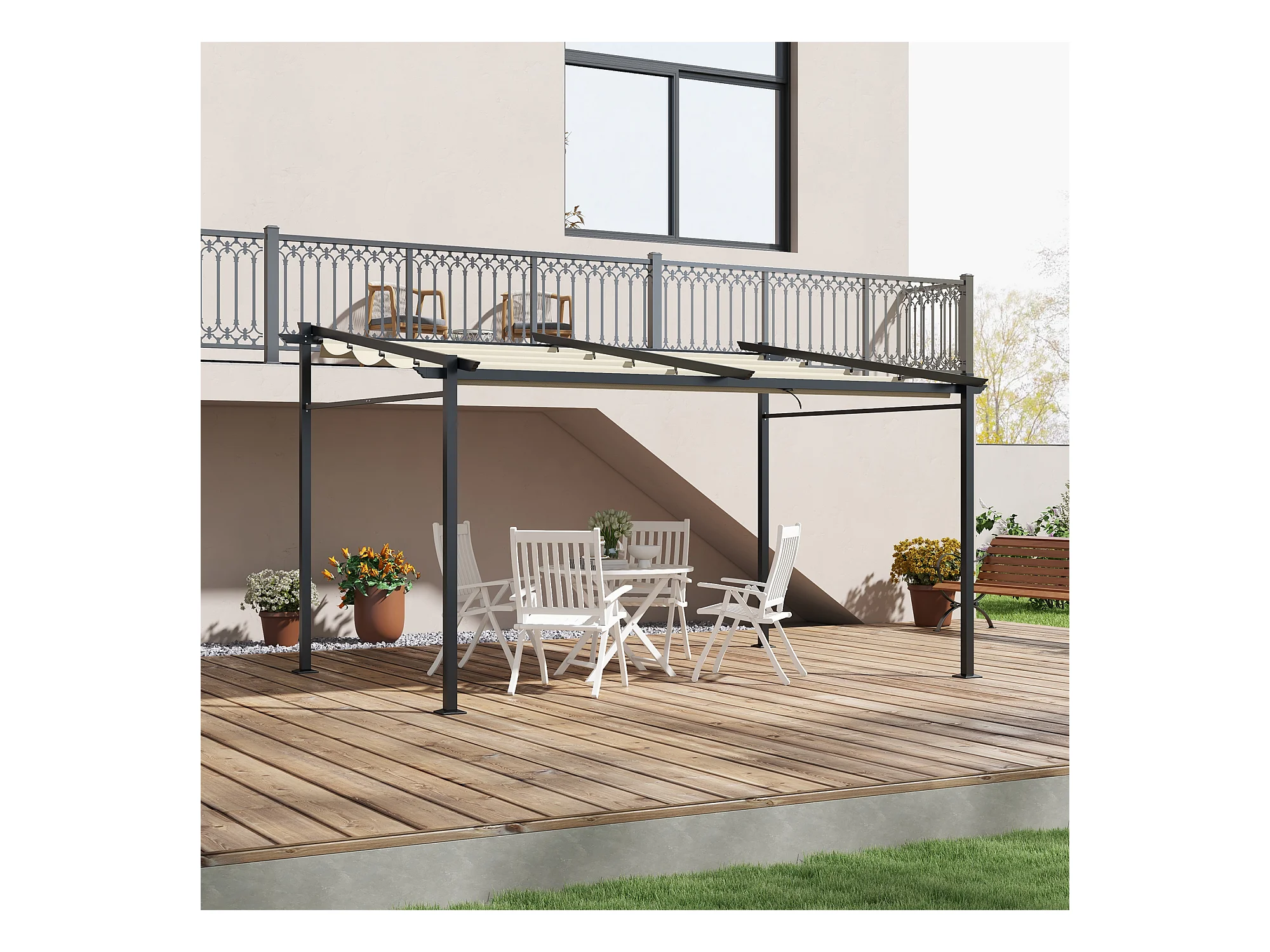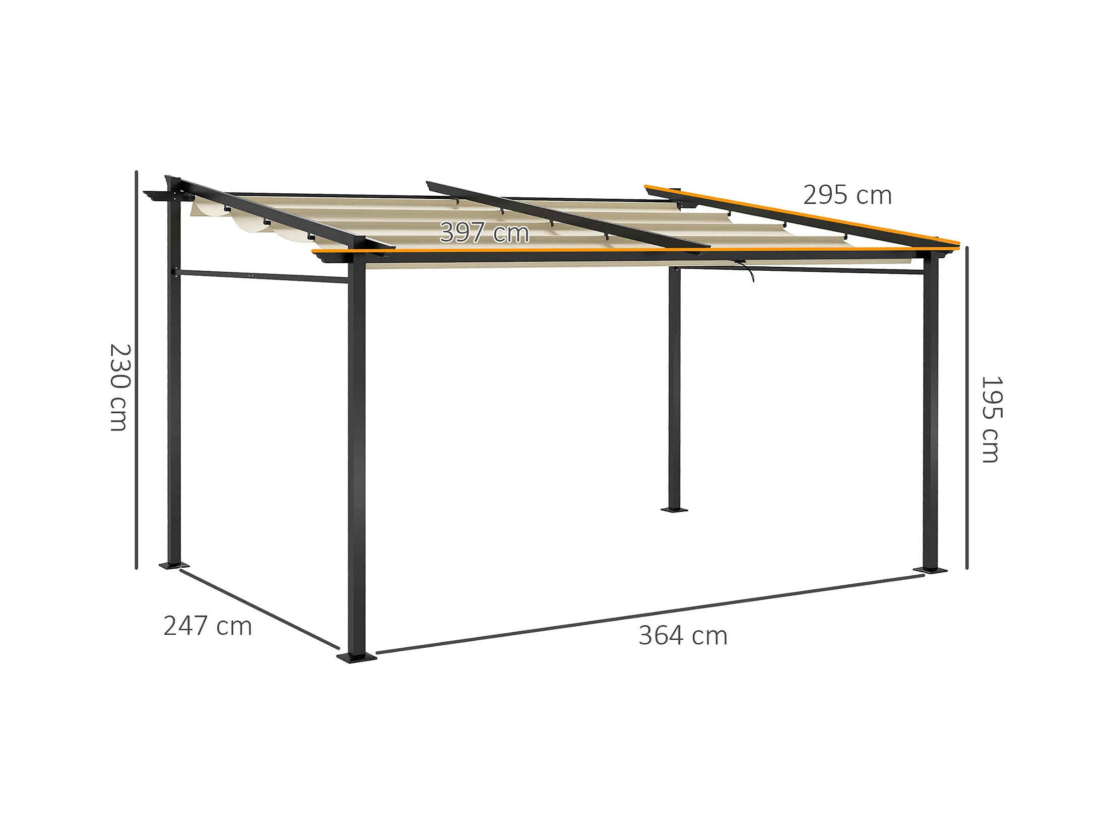 Pergola rétractable 3,97L x 2,95l x 2,3H m structure alu. métal époxy polyester beige