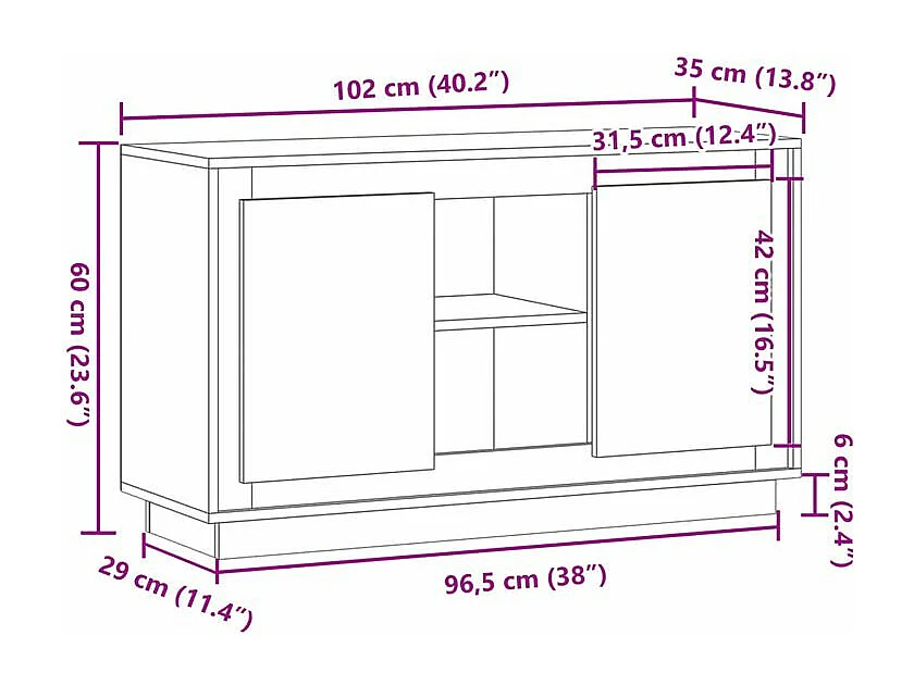 Buffet chêne marron 102x35x60 cm bois d'ingénierie EGER42956
