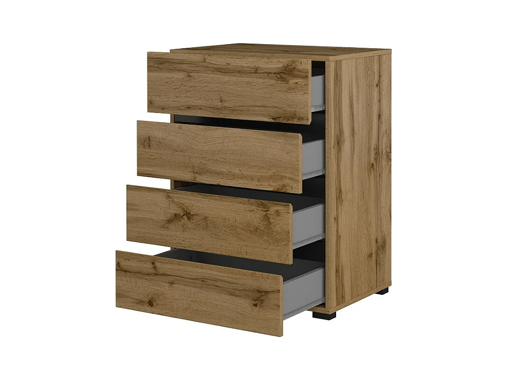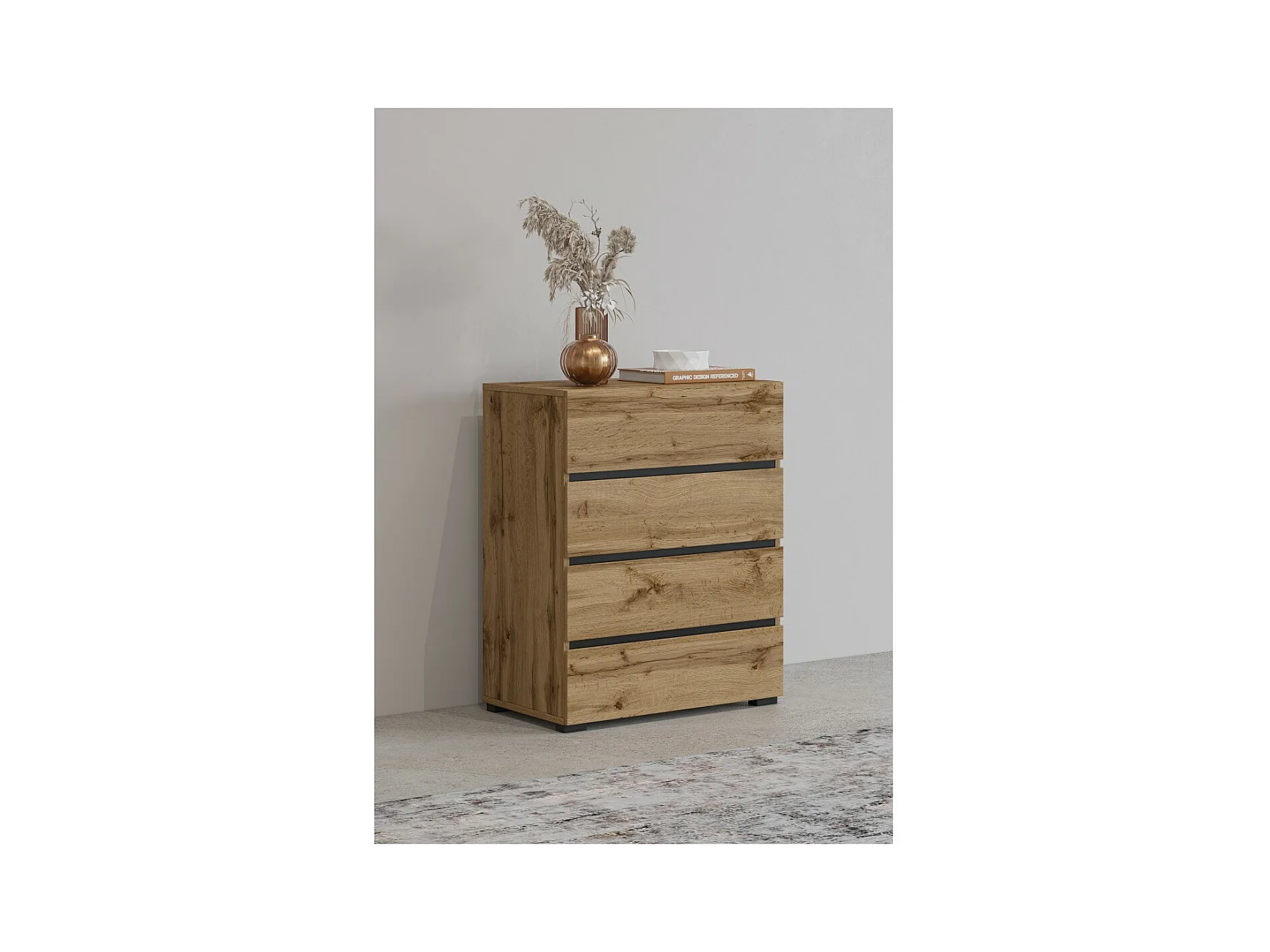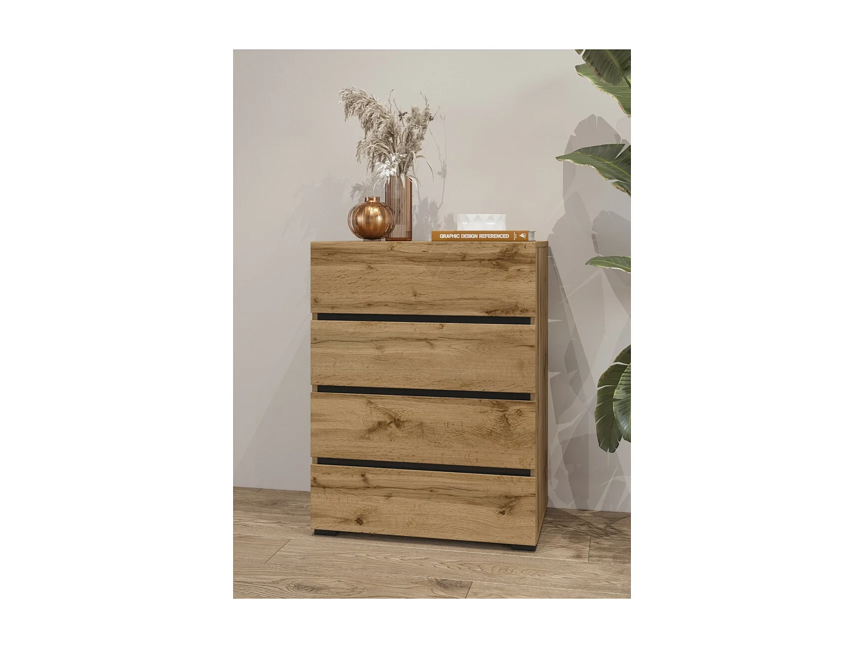 Petit buffet HAVANA – 4 tiroirs – Chêne et noir – Style naturel et moderne