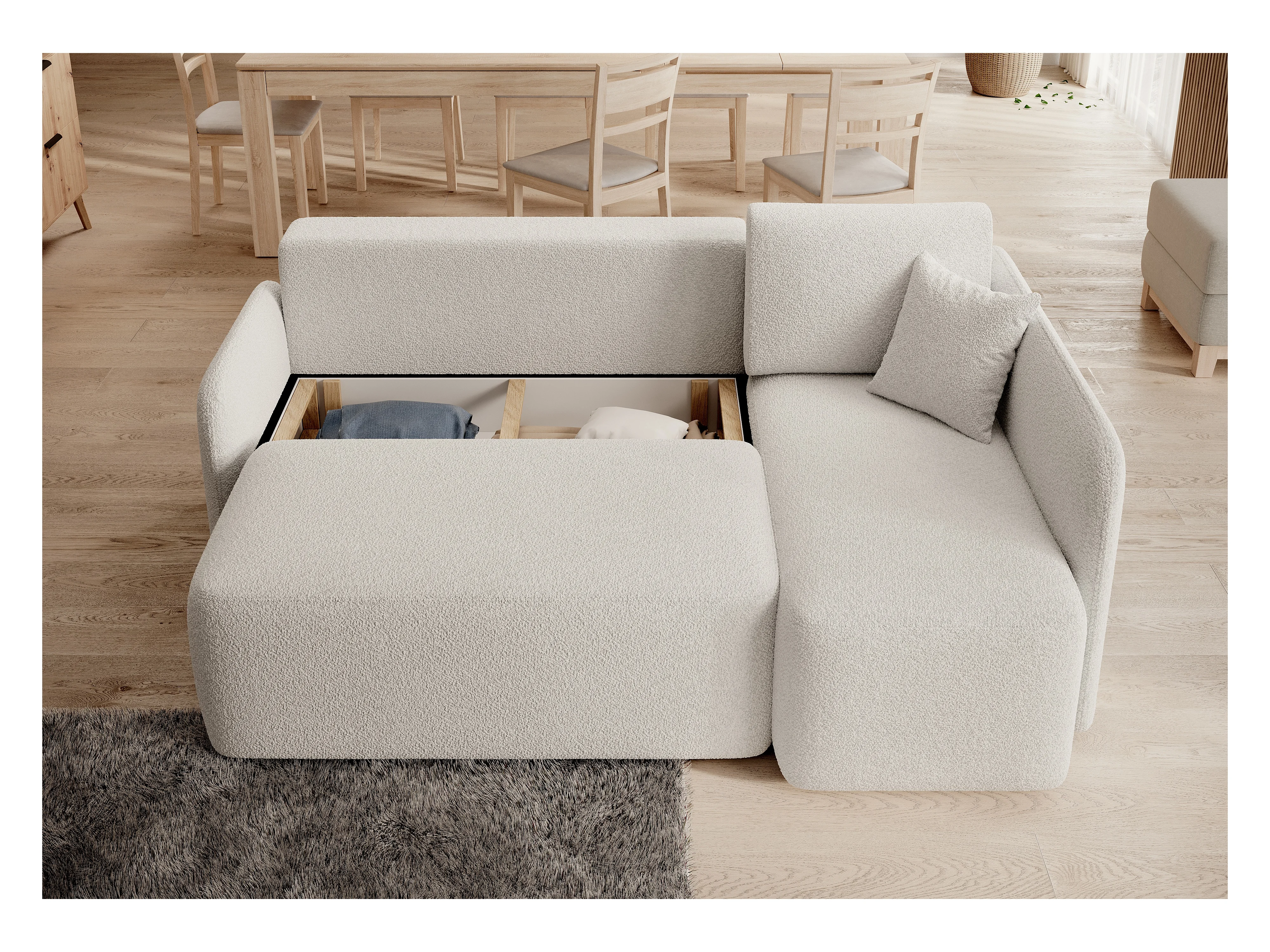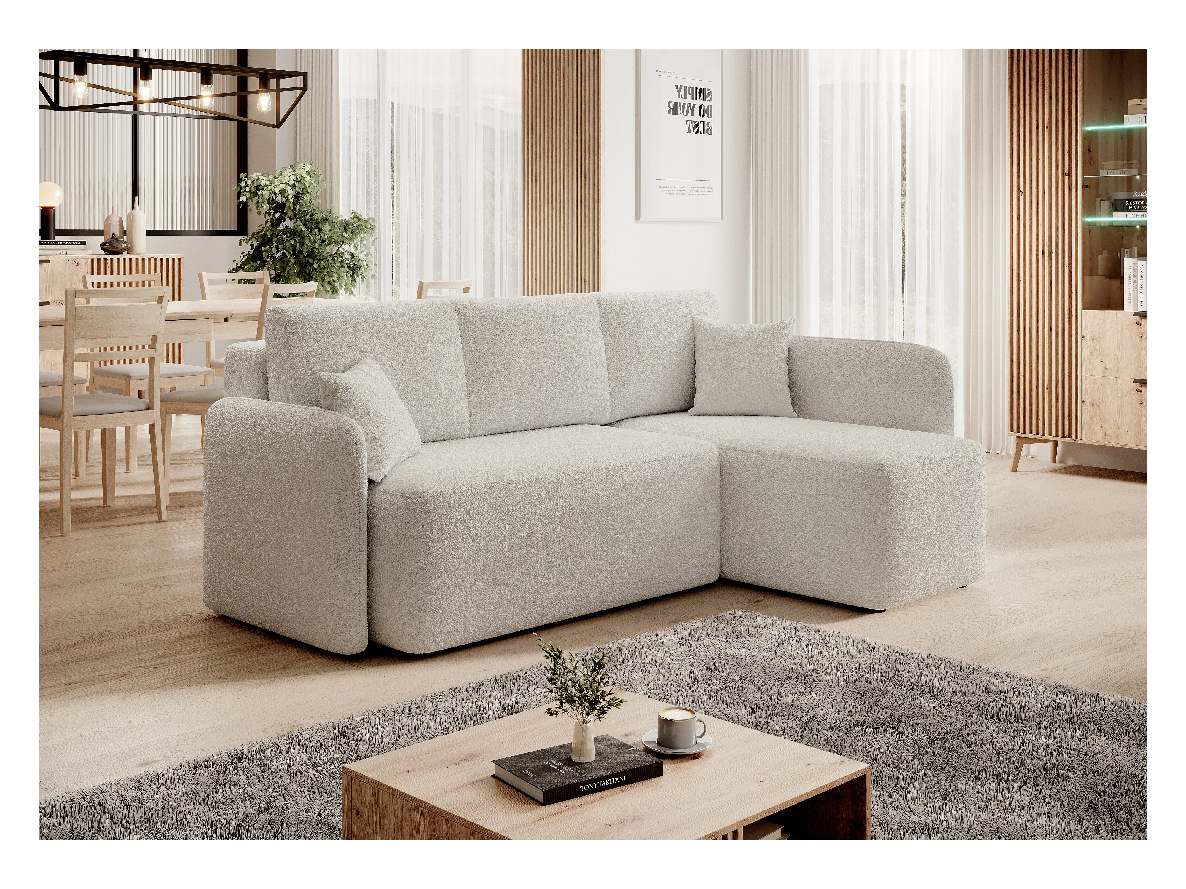 Petit canapé d'angle en tissu convertible avec coffre Takin 206cm-Blanc-angle droit