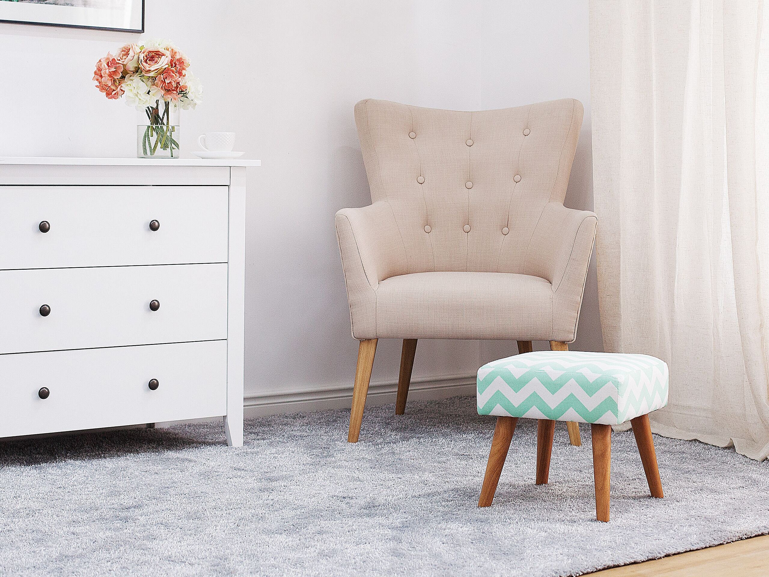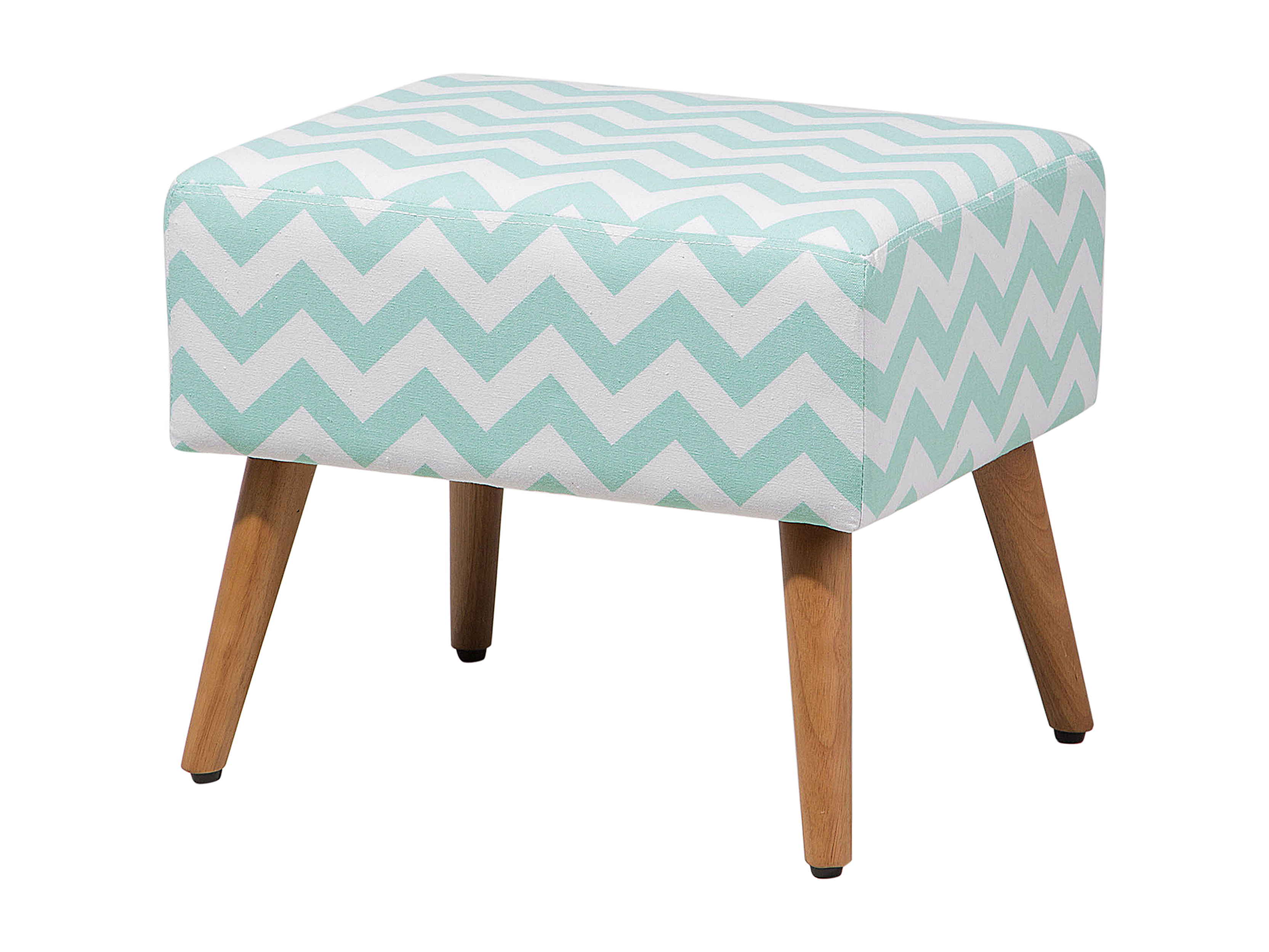 Tabouret bas en tissu effet velours texturé vert céladon et bois clair massif H46 cm GUESTA