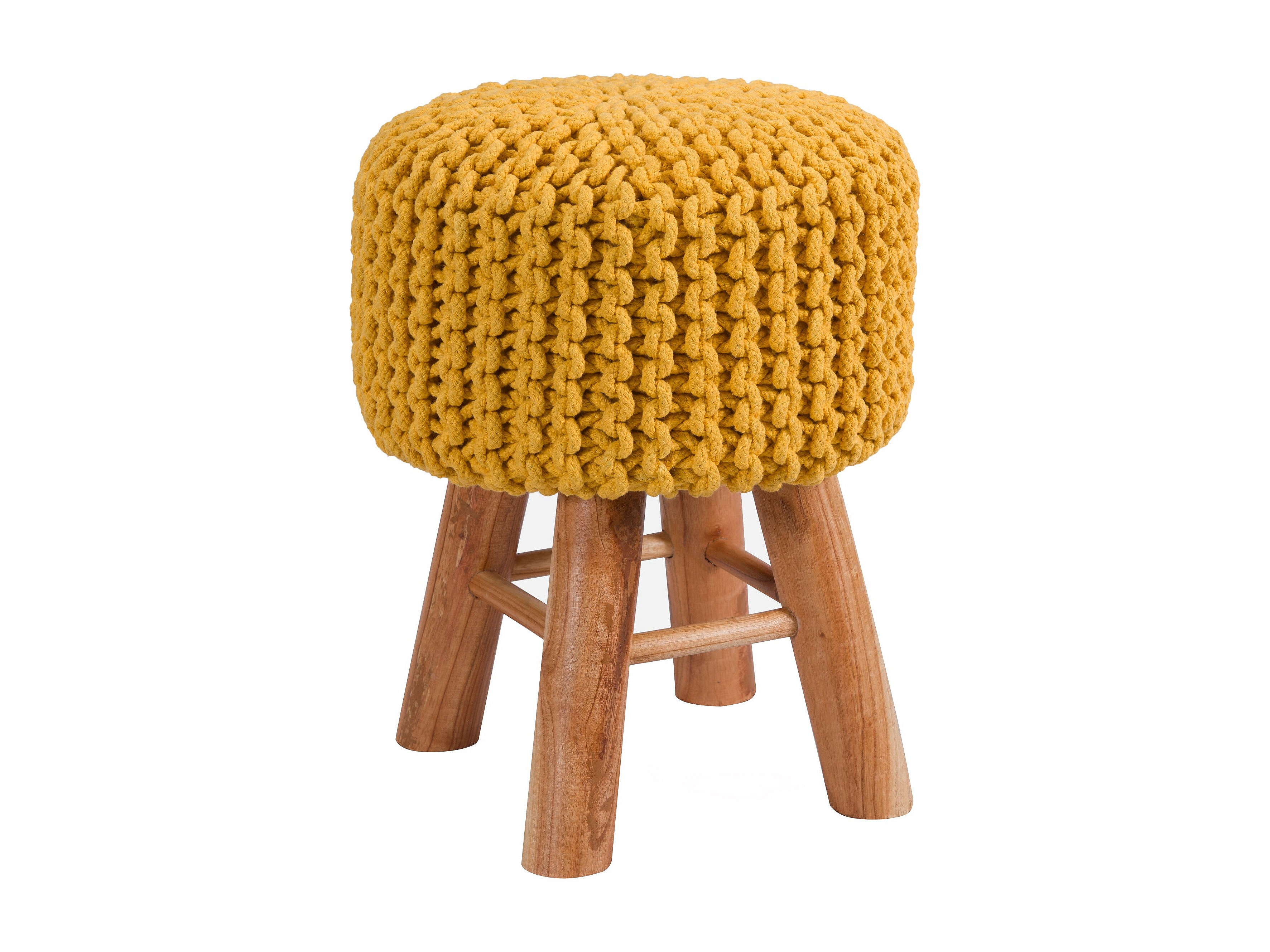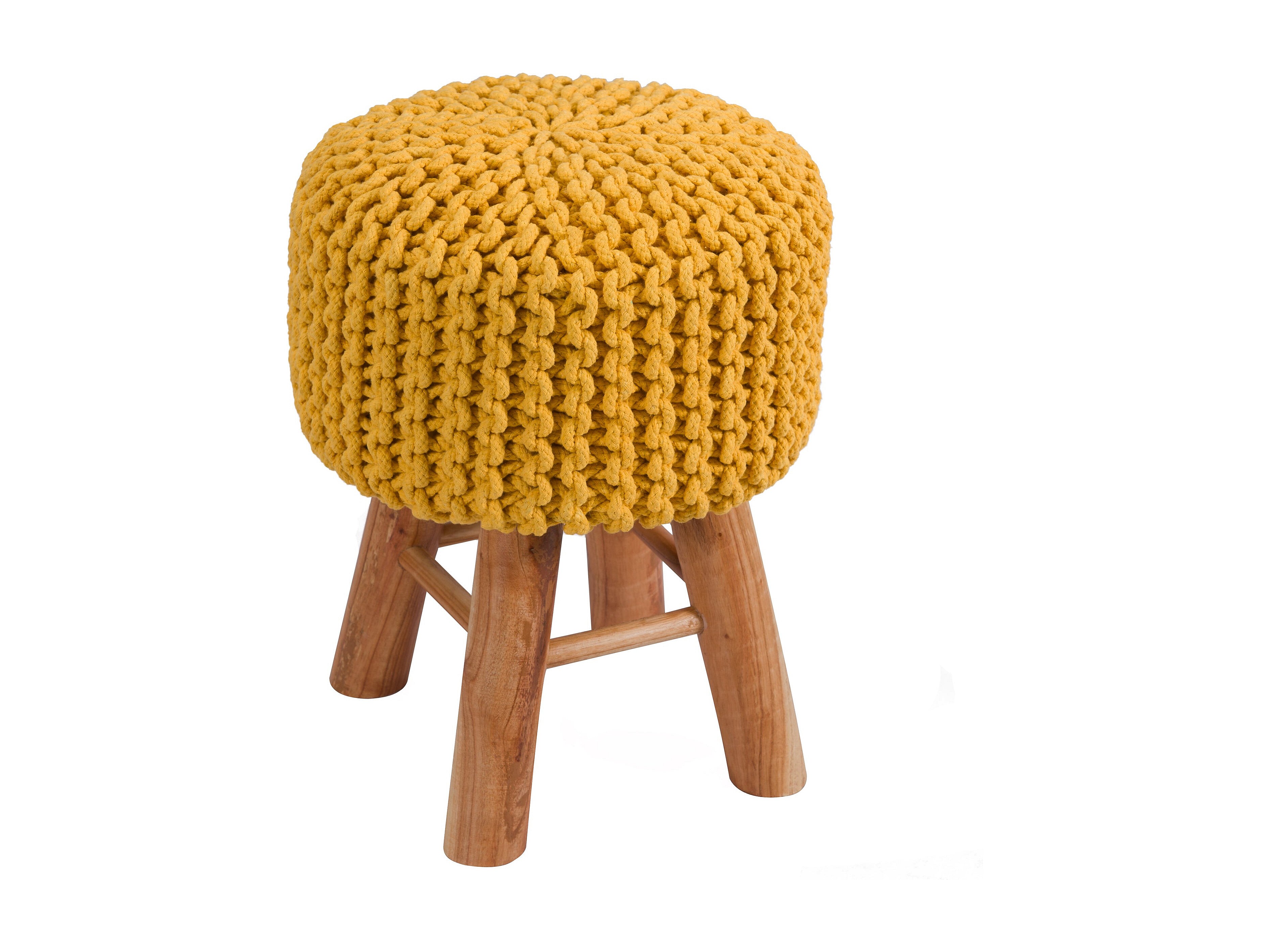 Petit tabouret tricot en coton jaune moutarde - Lisa