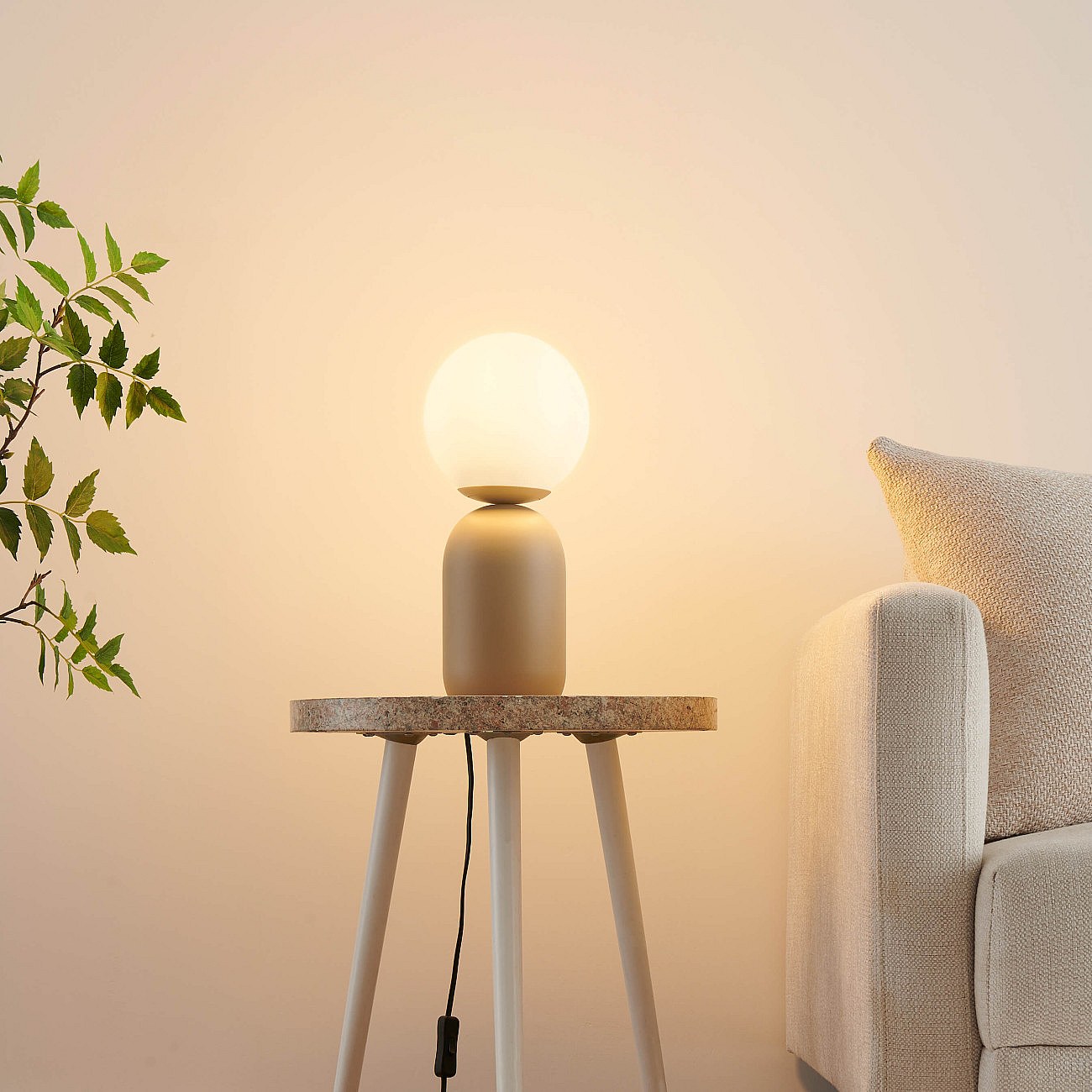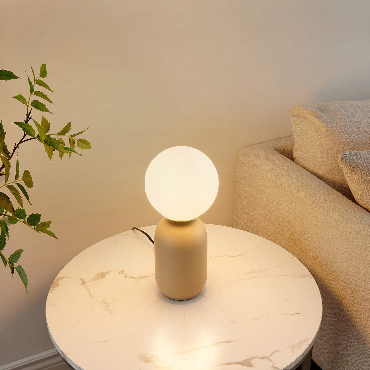 Lampe De Bureau Halo Moderne En Aluminium/Verre - 1 Sources Lumineuses - L.12 X H.19 Cm - Beige