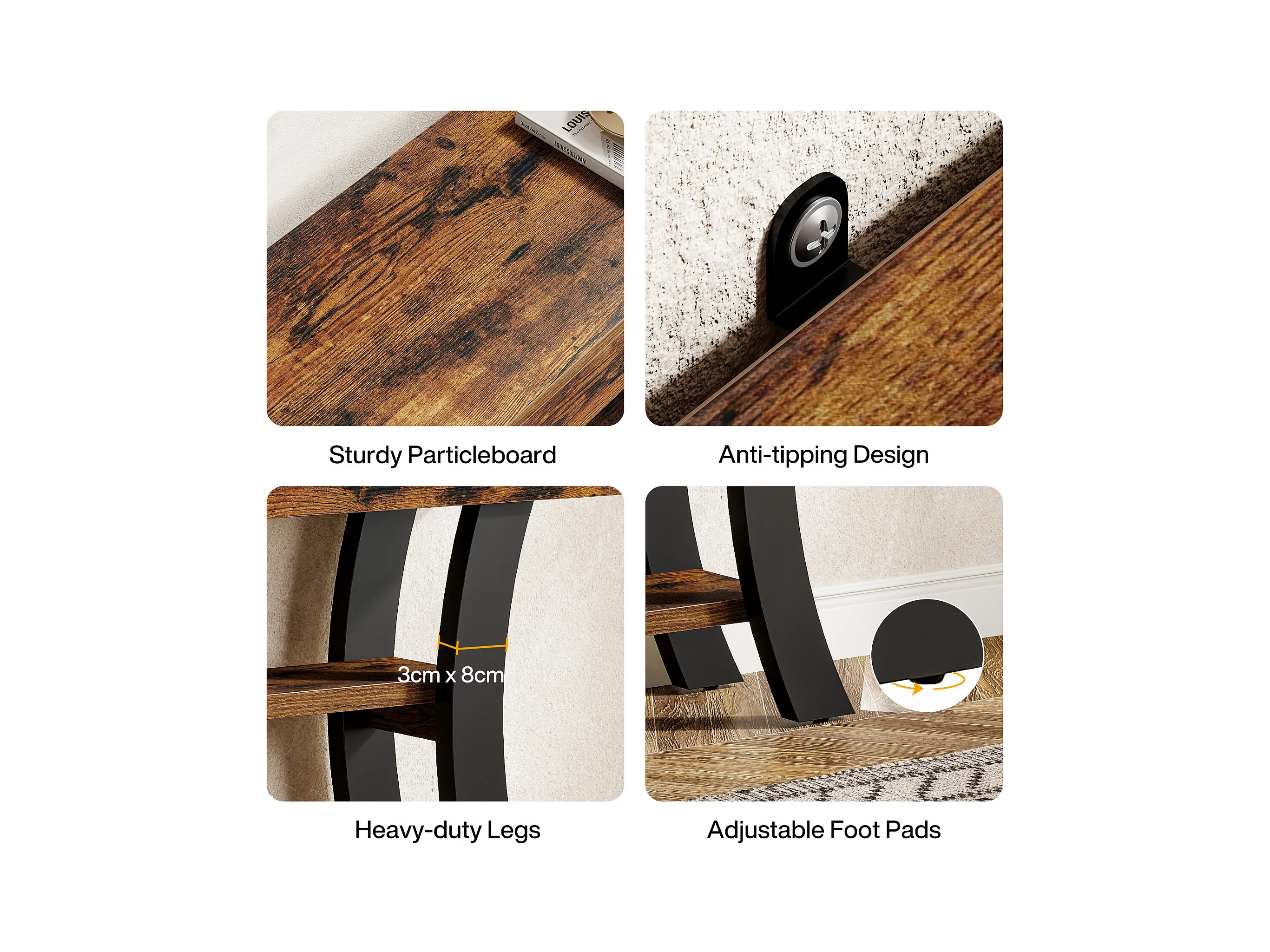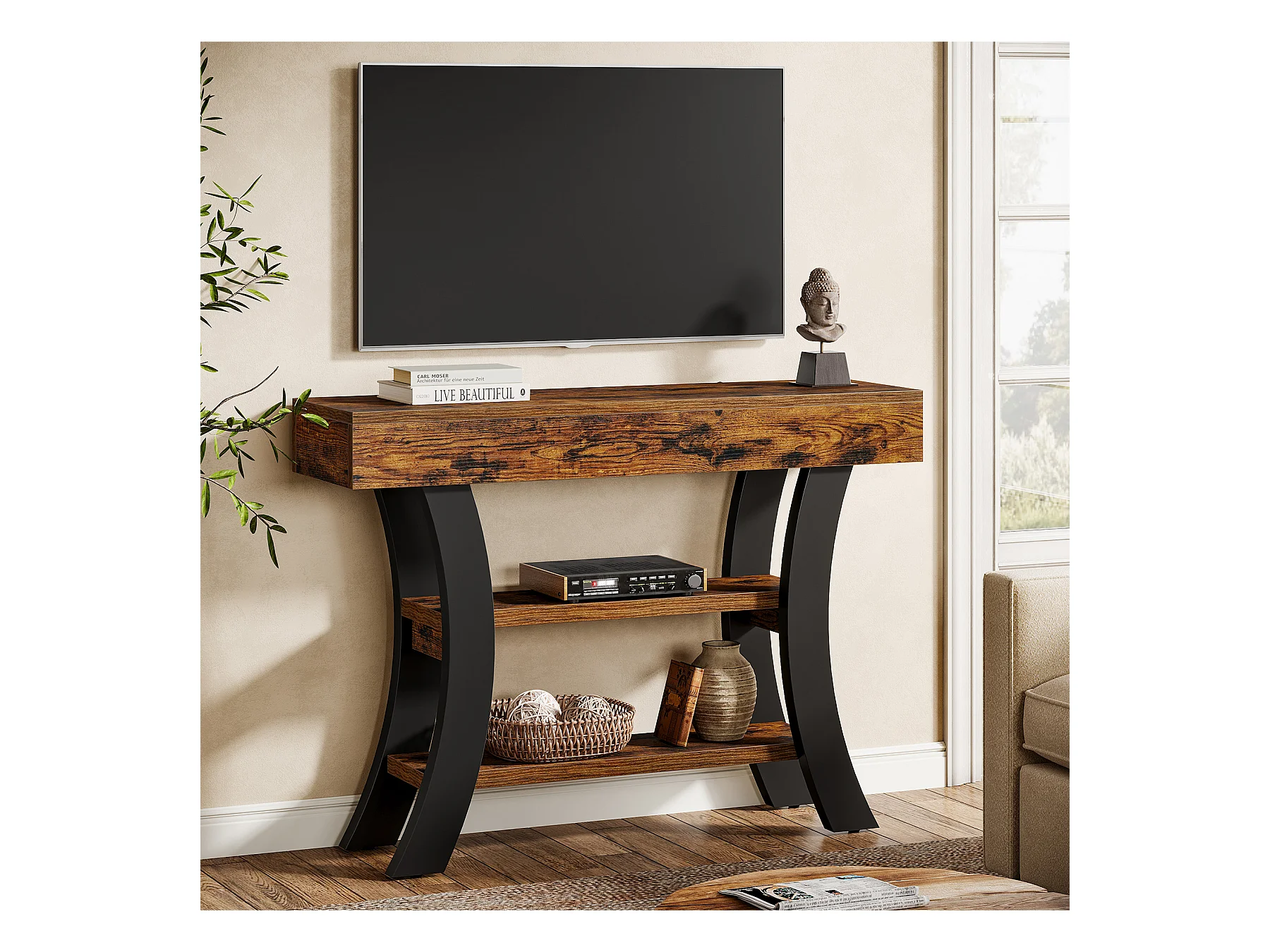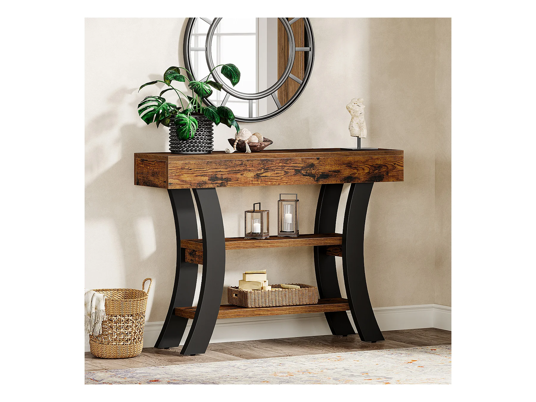 Petite table console de 105 cm pour entrée, table de canapé rustique à 3 niveaux
