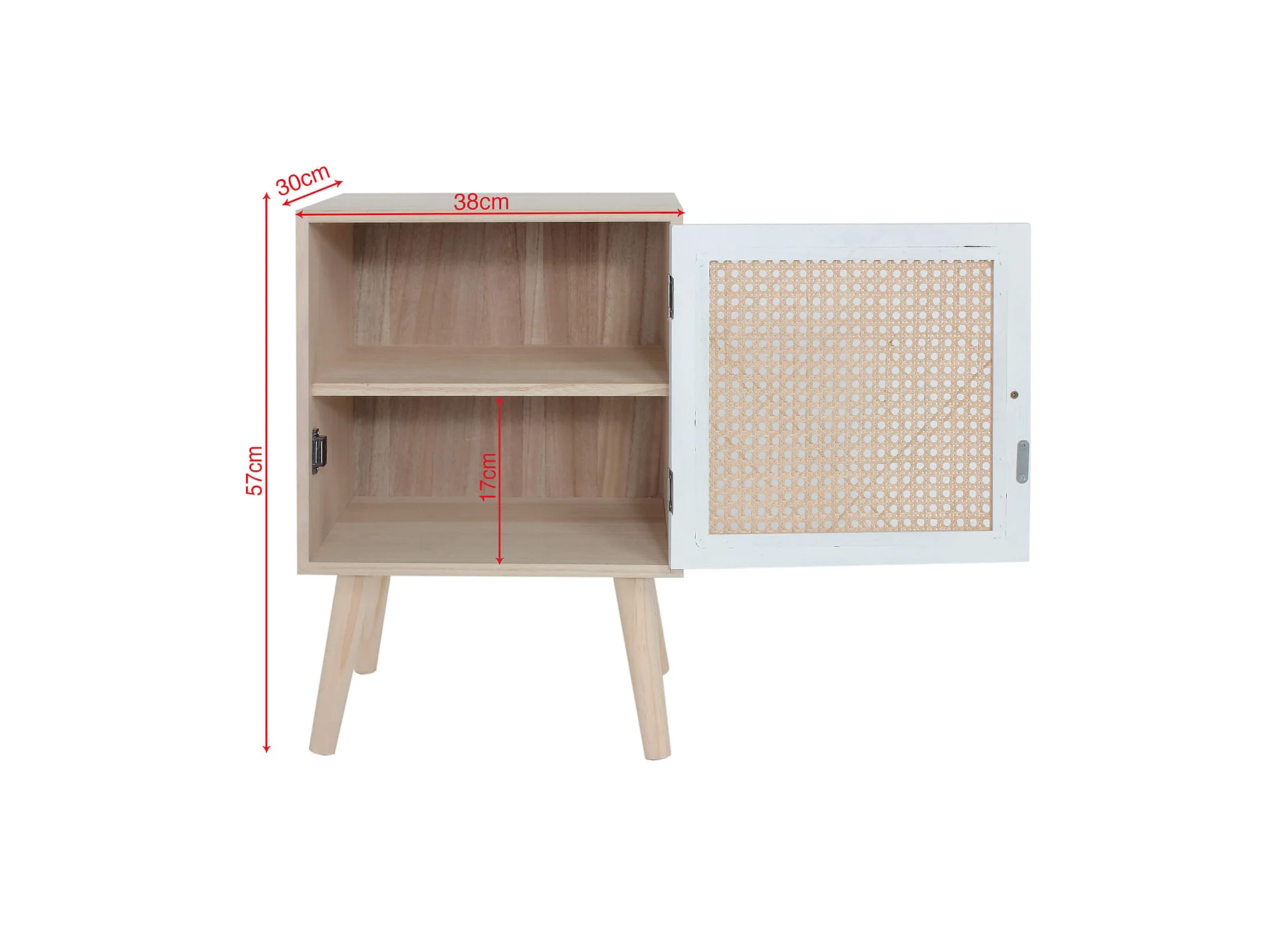 Table de Chevet pour Chambre 1 Porte en Bois et Rotin Marron Gain de Place