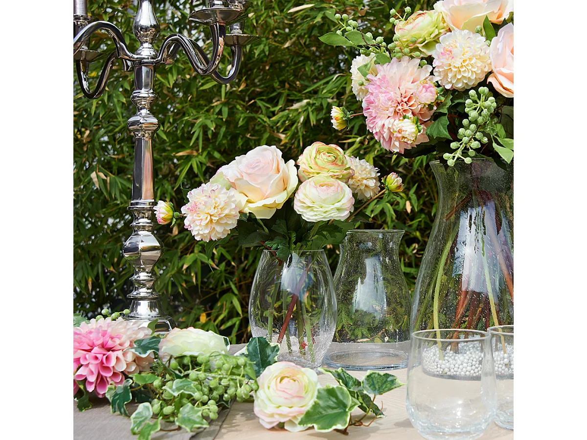 Bougeoir Chandelier en Verre Rose H 25.7 cm