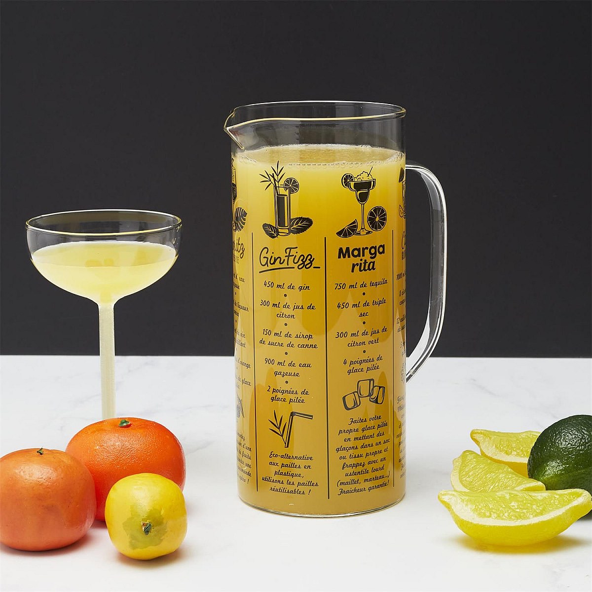 Pichet Avec Recette Cocktail 2l Transparent, Noir