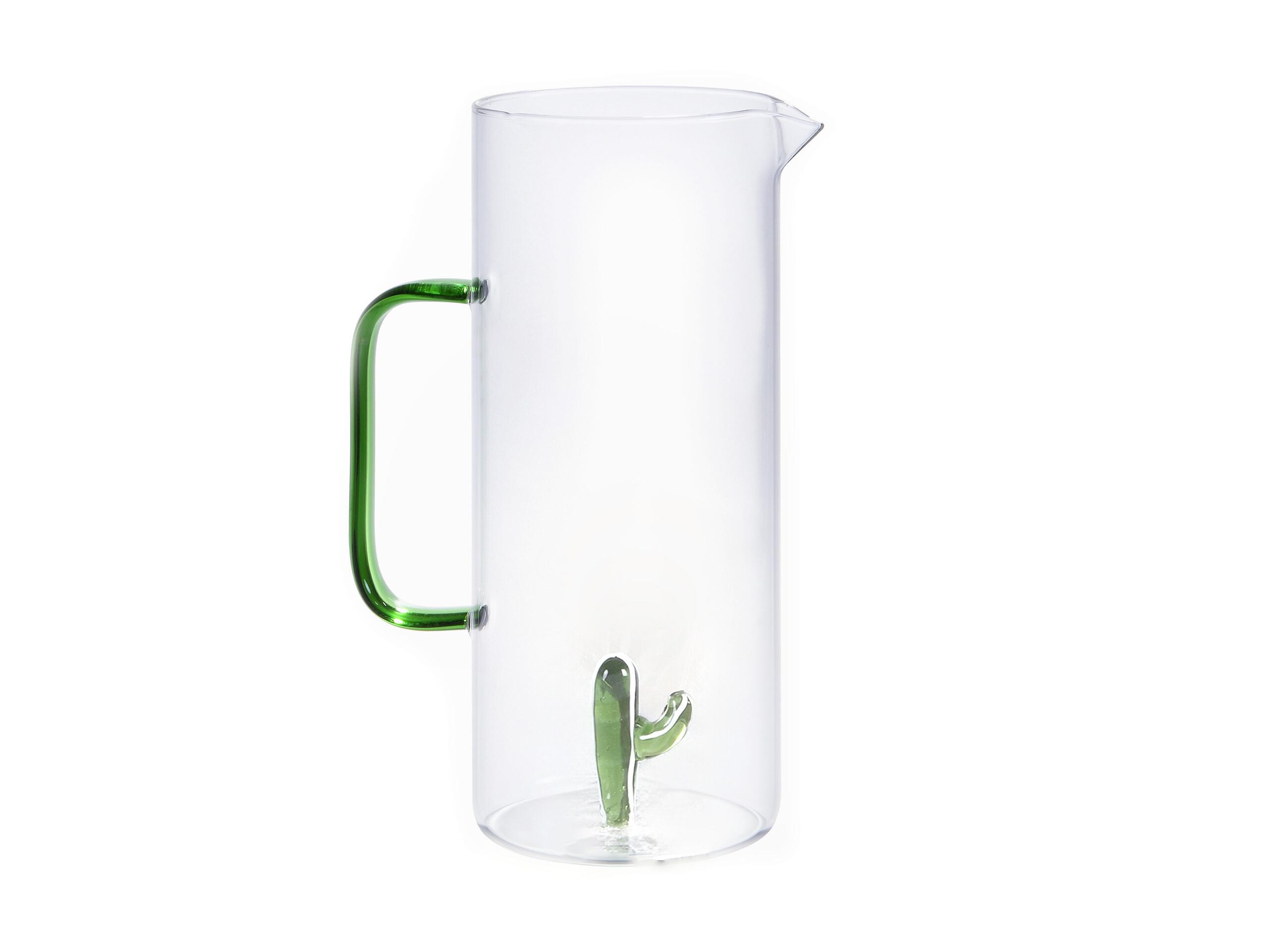 Pichet en verre avec cactus - Transparent et vert - D. 14.5 x H.24 cm - OLATA