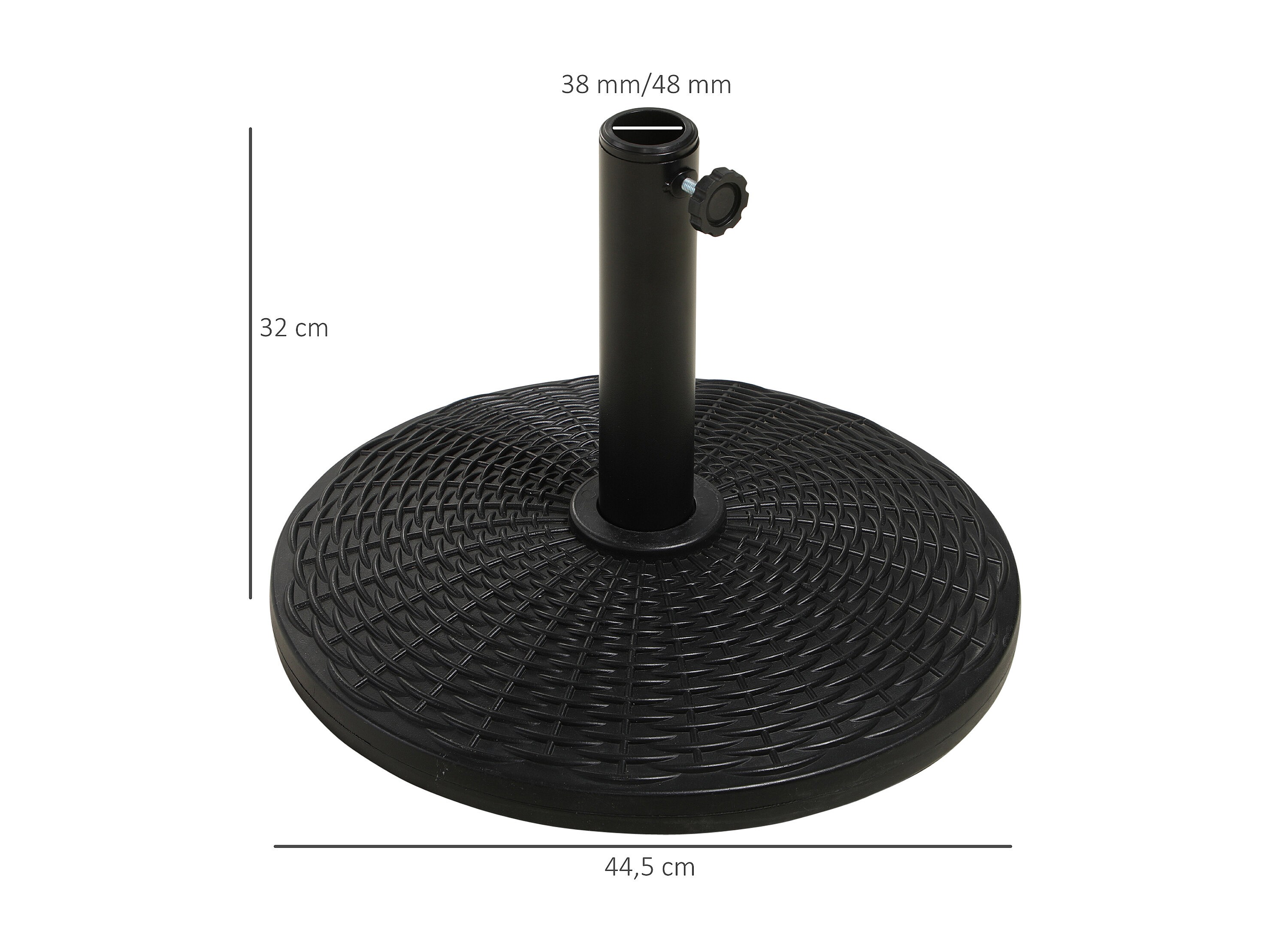 Pied de parasol rond base de lestage Ø 44 x 32 cm résine imitation rotin poids net 11 Kg noir
