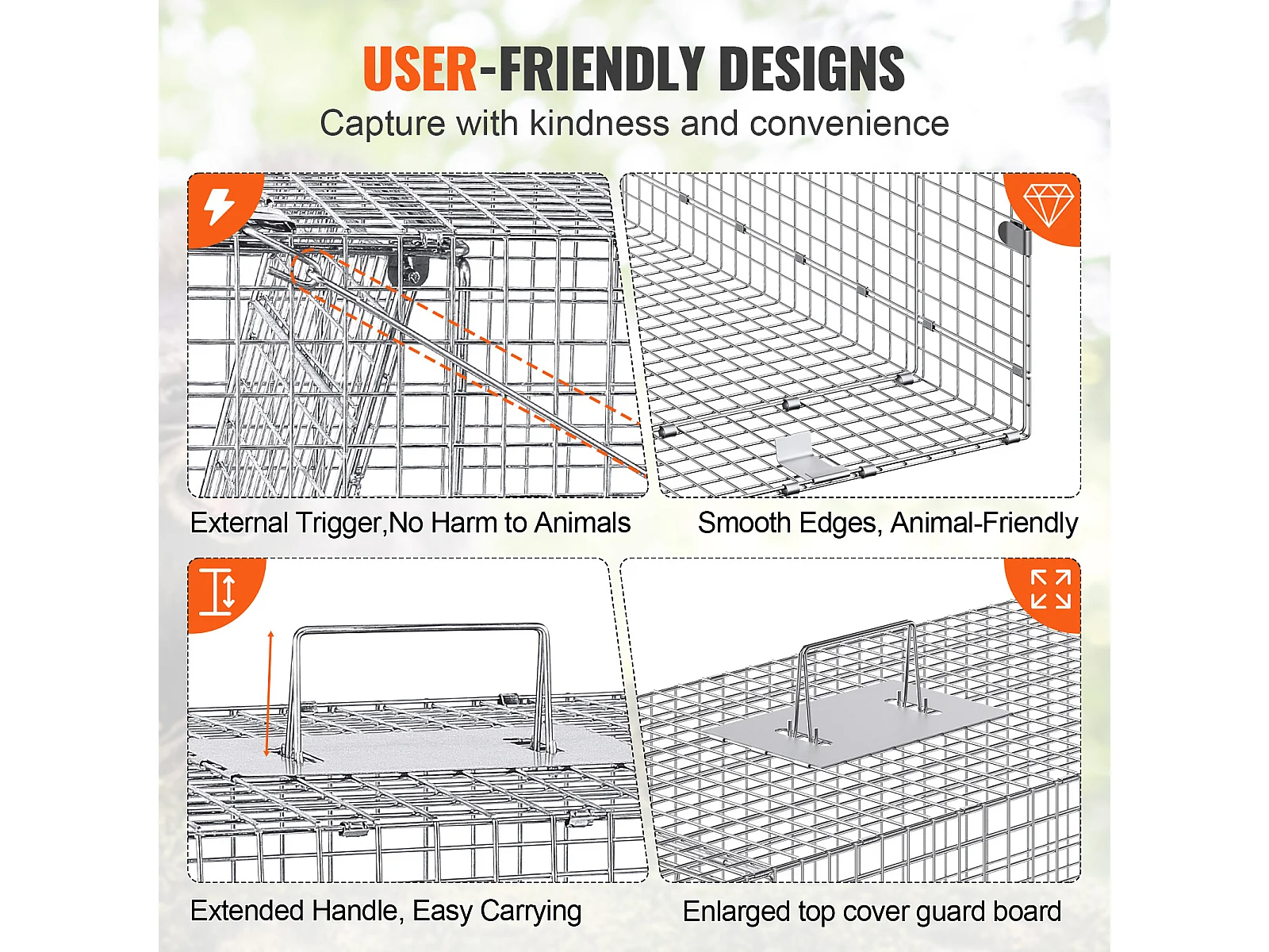 Piège à Cage pour Animaux Vivants SucceBuy 1067 x 406 x 457 mm Sans Cruauté pour Chats, écureuils