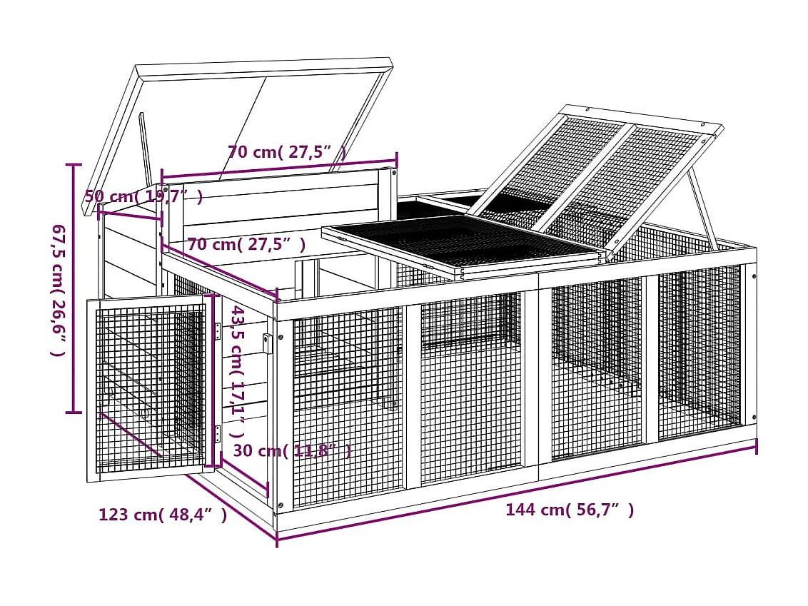 Pierre-Armand-Luc Clapier gris 144x123x67,5 cm bois de pin massif