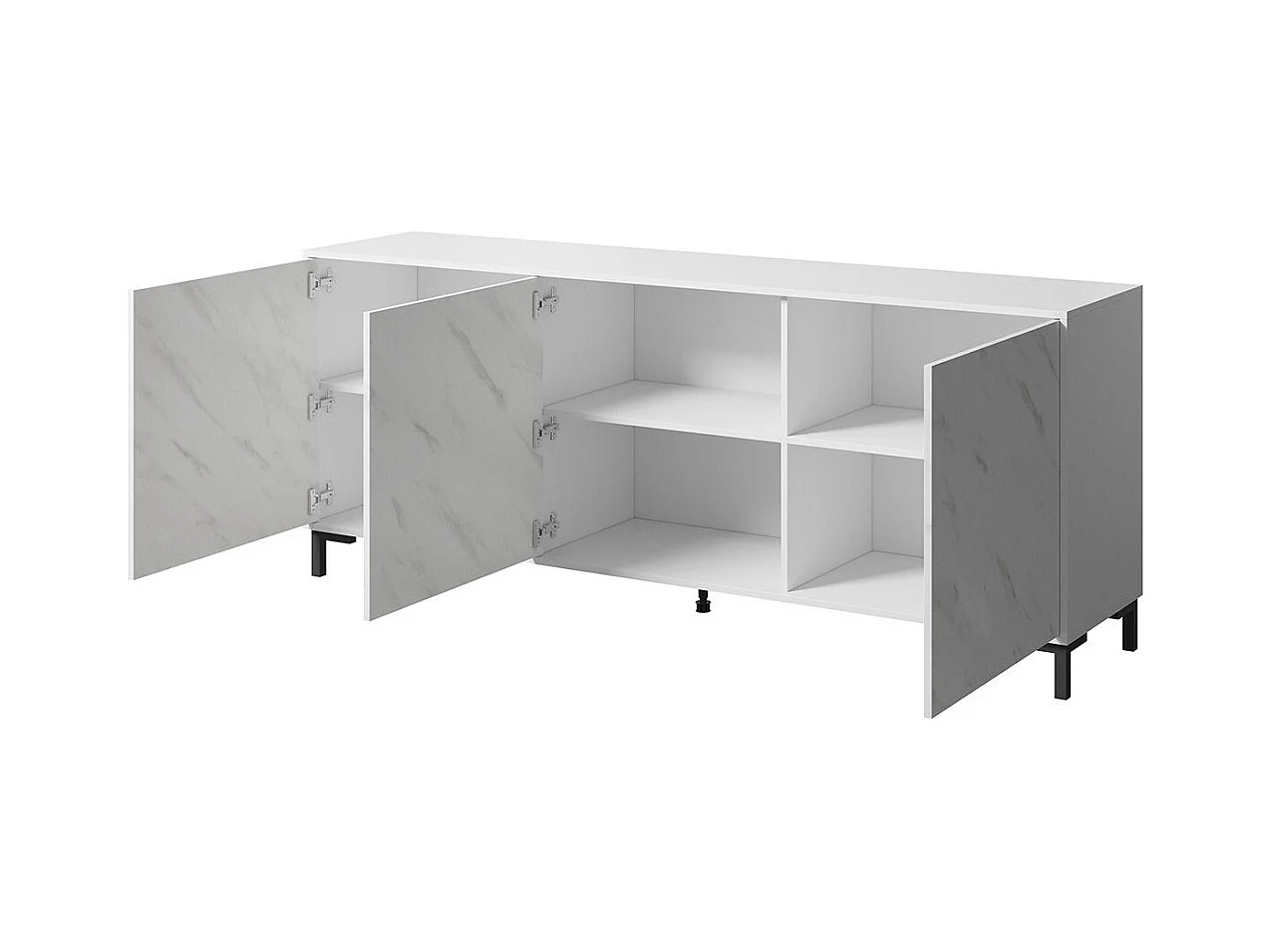 Buffet Charlotte 158, Marbre blanc|Blanc, 81x200cm, Le nombre de portes: 345cm, Stratifié