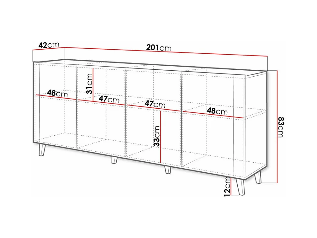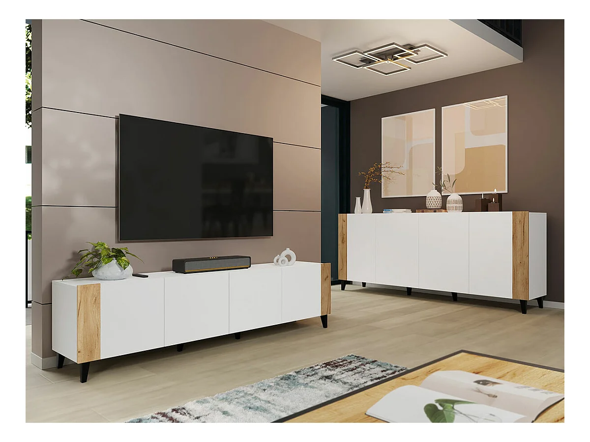 Buffet Charlotte 183, Blanc|Craft chêne, 83x201cm, Le nombre de portes: 442cm