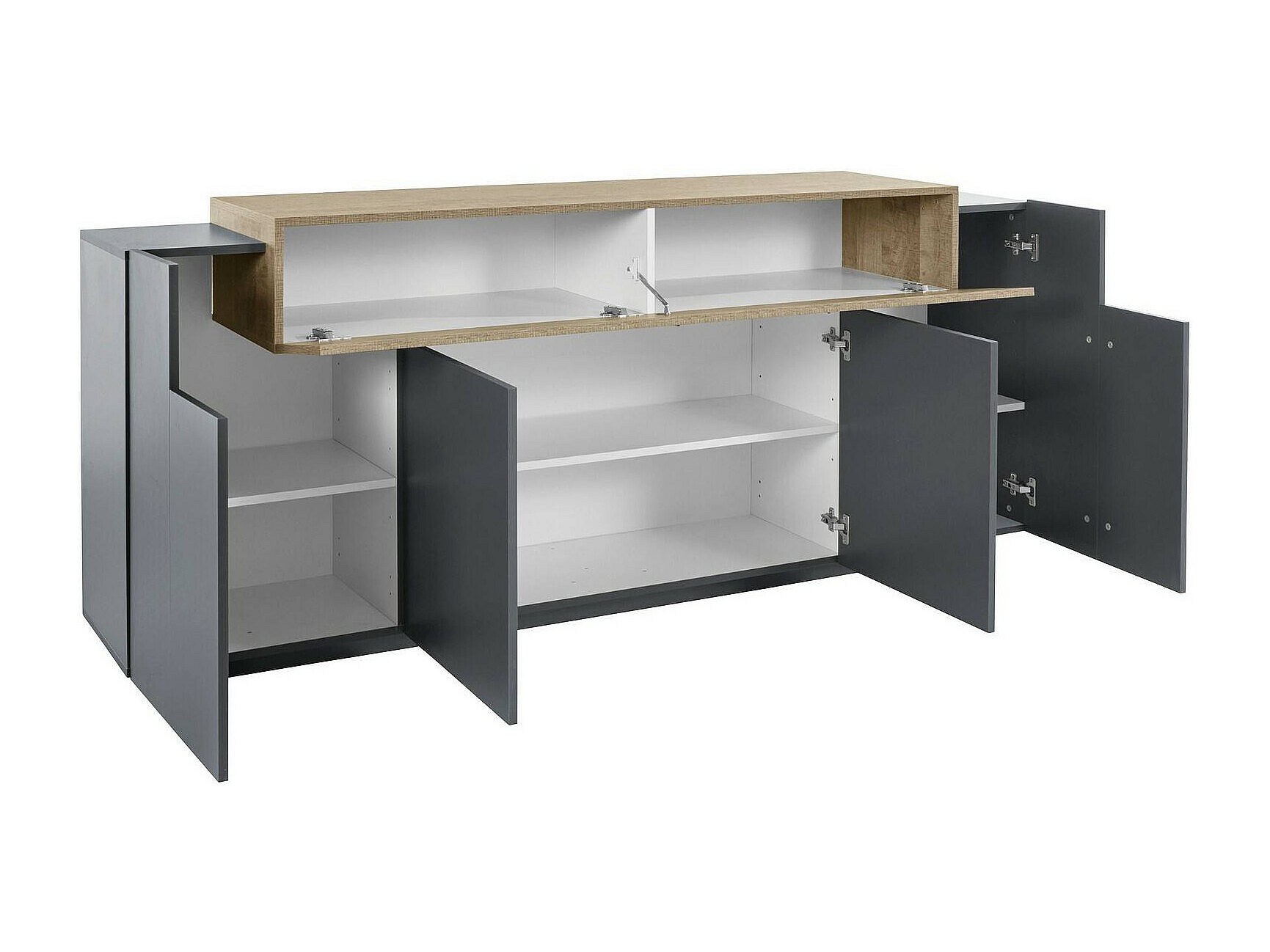 Buffet Dgerl, Buffet de cuisine 4 portes, Buffet de salon, 100% Made in Italy, 220x45h86 cm, Anthracite et Érable