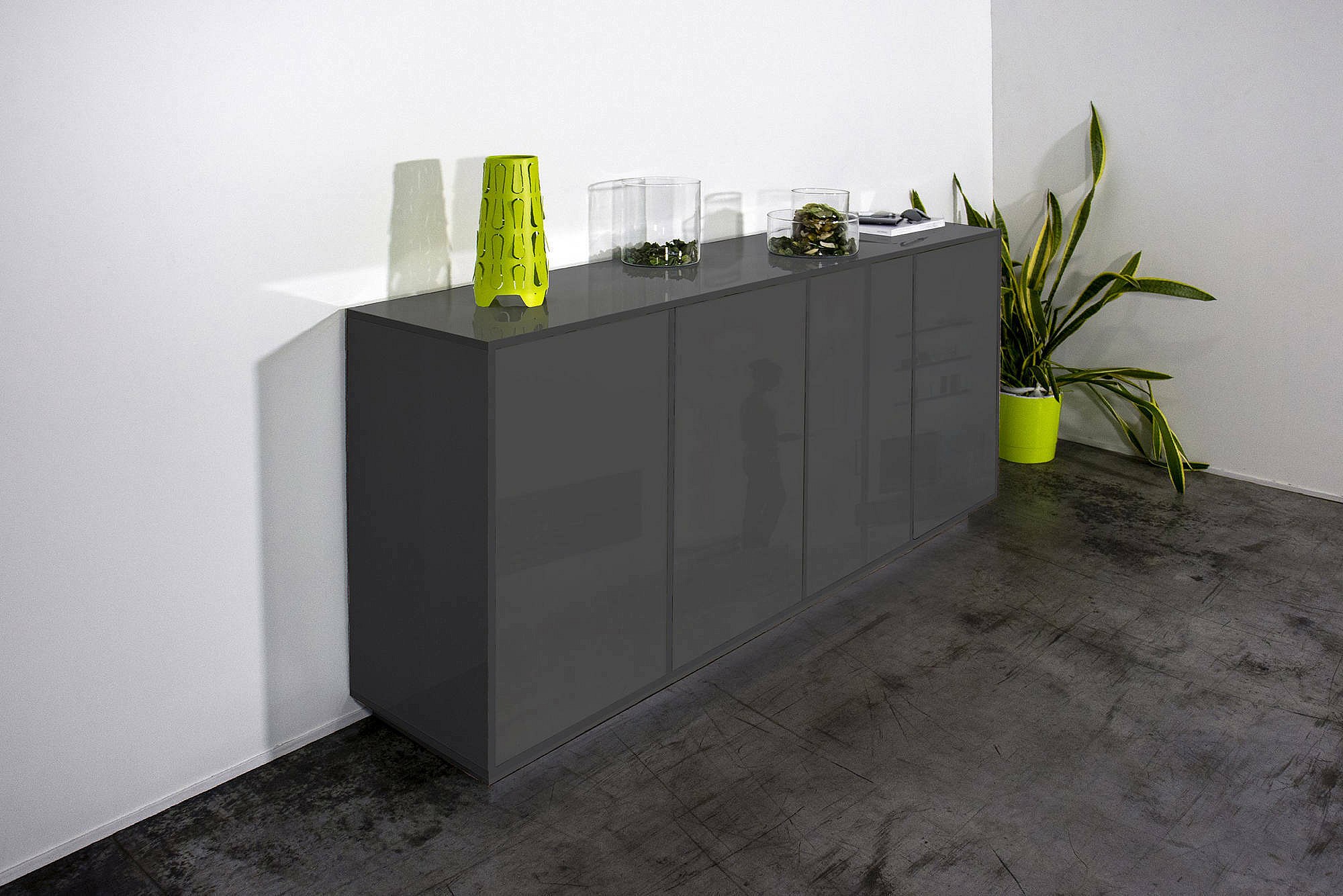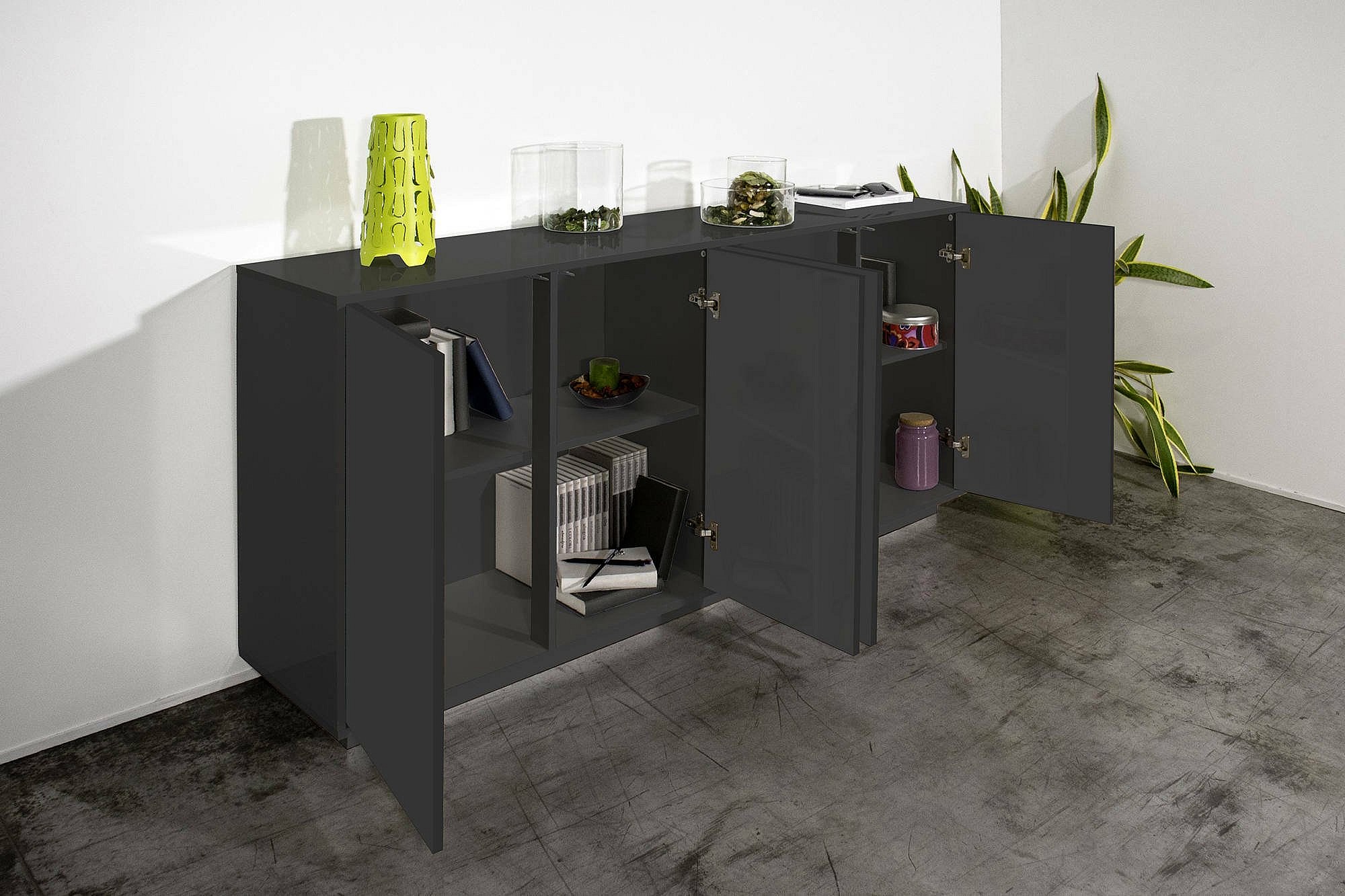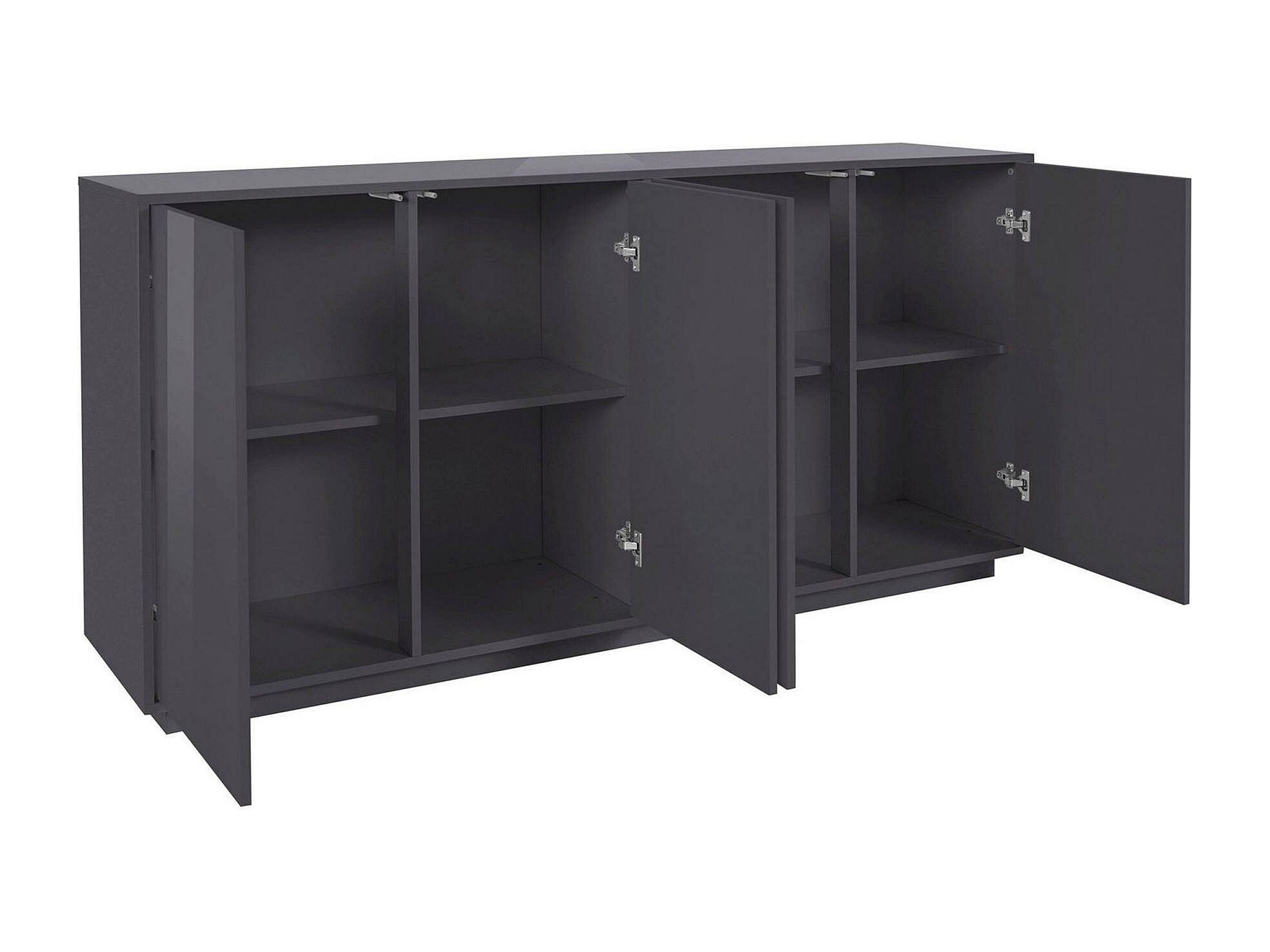 Buffet Dnande, Buffet de cuisine 4 portes, Buffet de salon, 100% Made in Italy, 180x41h86 cm, Anthracite Brillant