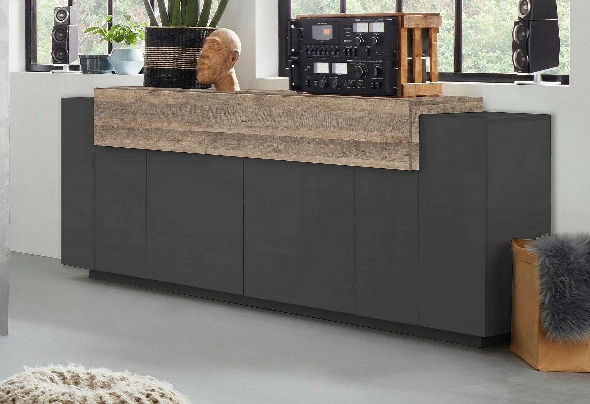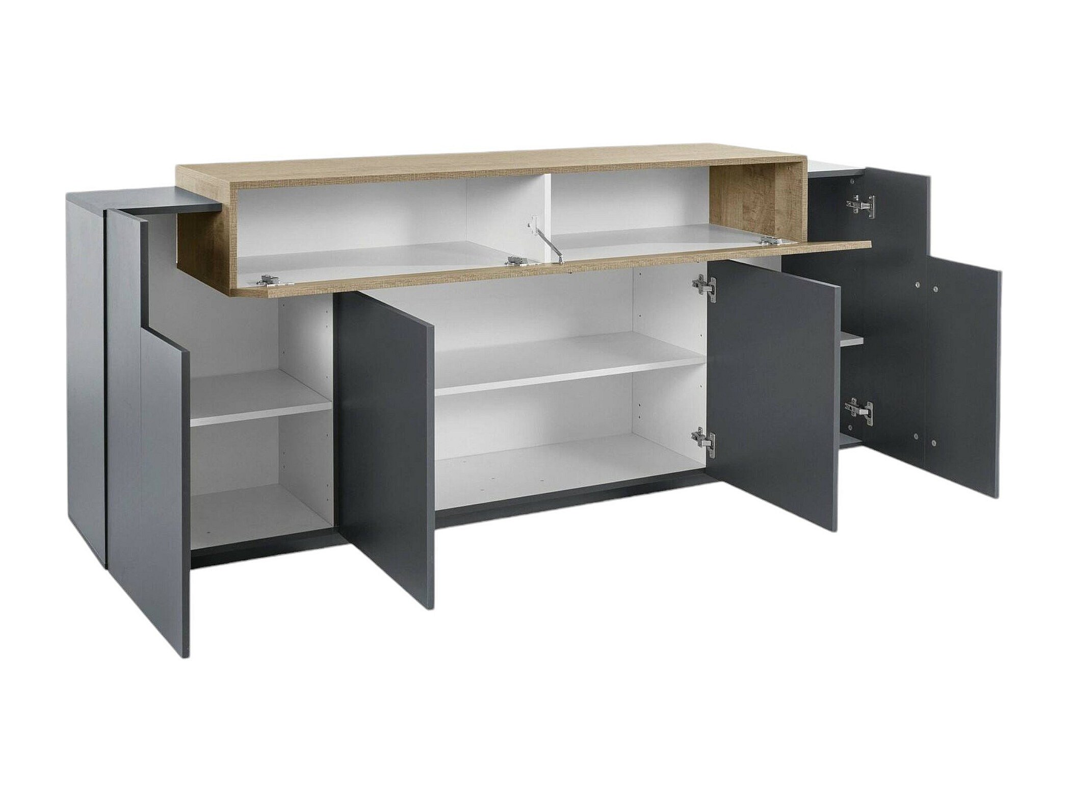 Buffet Loris, Buffet de cuisine 4 portes, Buffet de salon, 100% Made in Italy, 220x45h86 cm, Anthracite et Érable