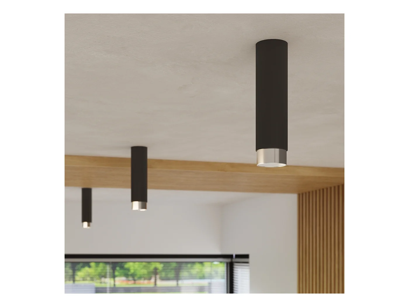 Plafonnier Alvor moderne en acier - 1 sources lumineuses 3000K - L.6 x H.22,5 cm - noir/chromé