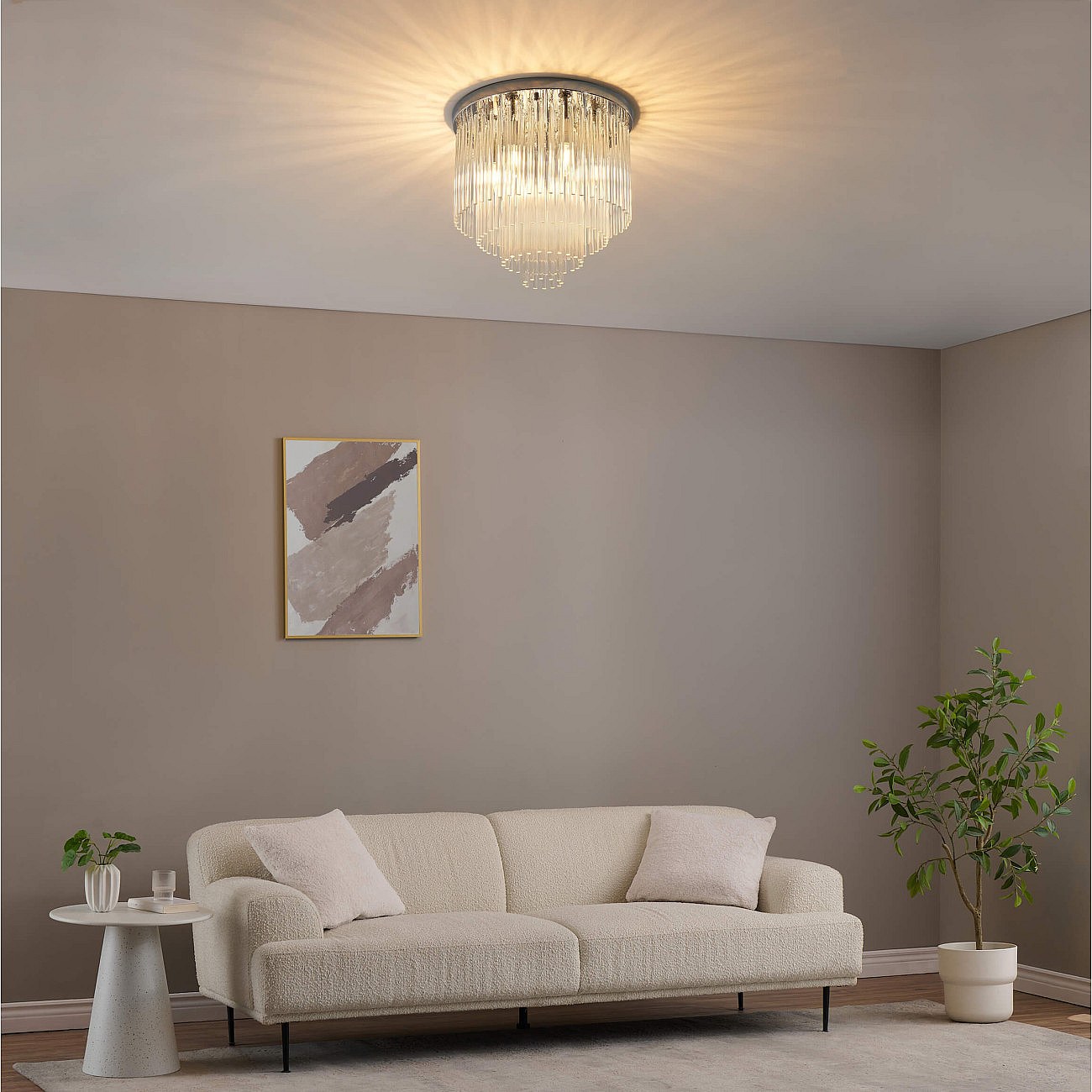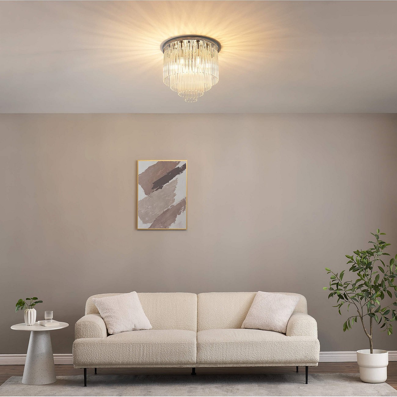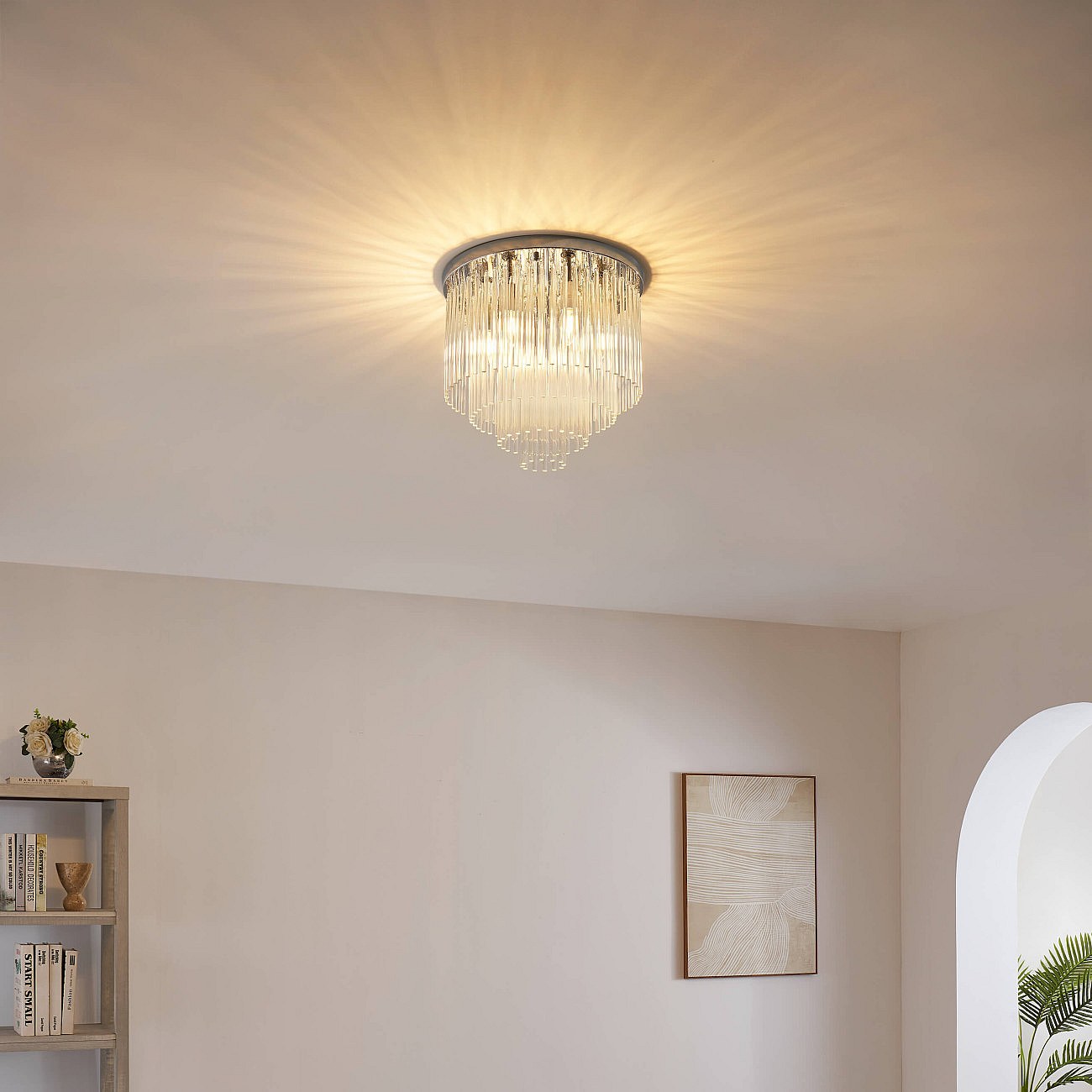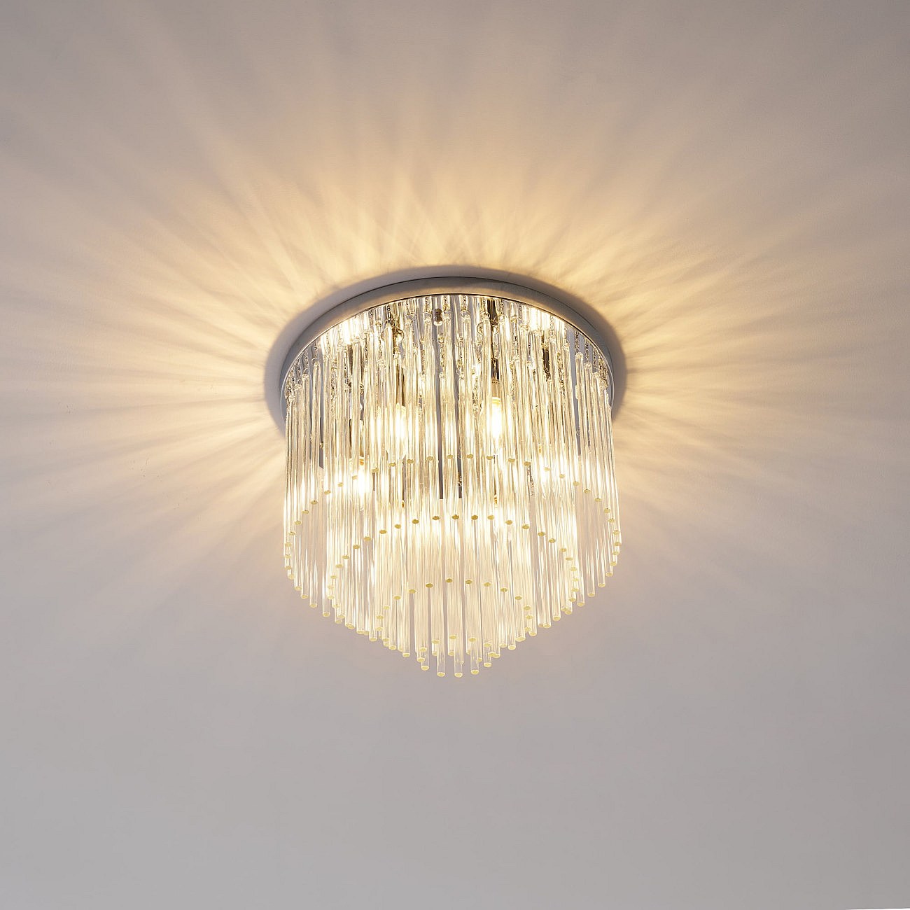 Plafonnier chic chromé en verre cascade de pampille transparentes - Sandrilla