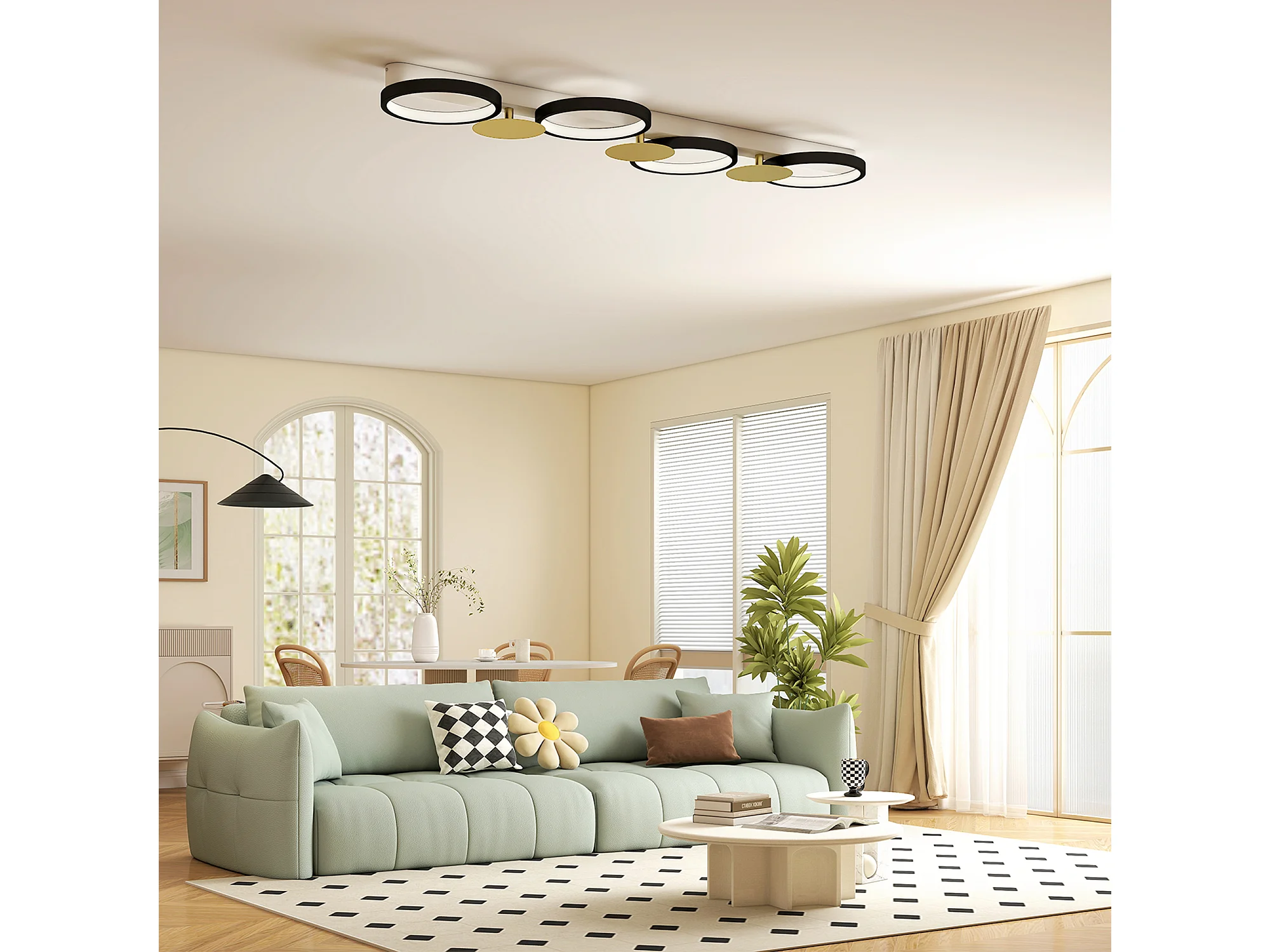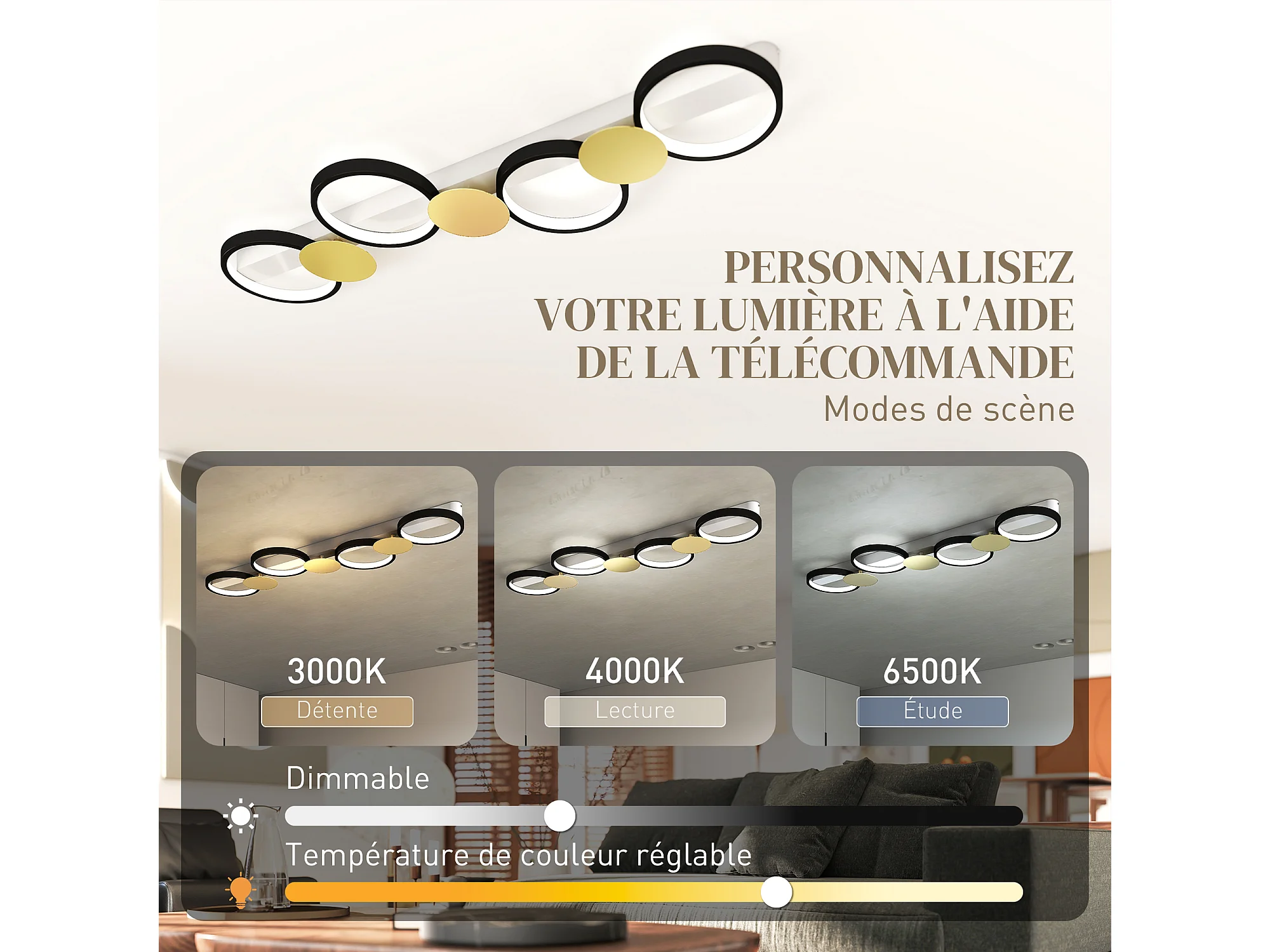 Plafonnier design anneaux LED 38W réglable avec télécommande métal noir doré