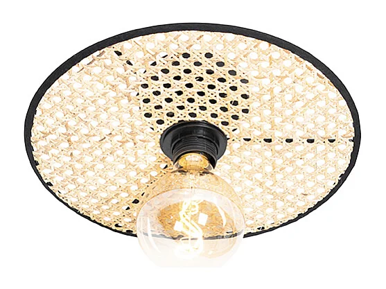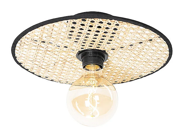 Plafonnier et applique Country noir avec rotin 35 cm - Kata