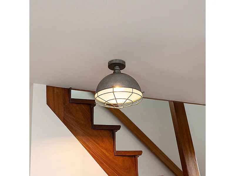 Plafonnier industriel argent vieilli 25,5 cm - Course