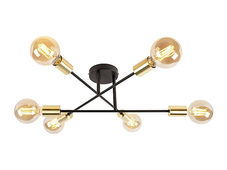 Plafonnier industriel noir avec or 6 lumières - Sydney