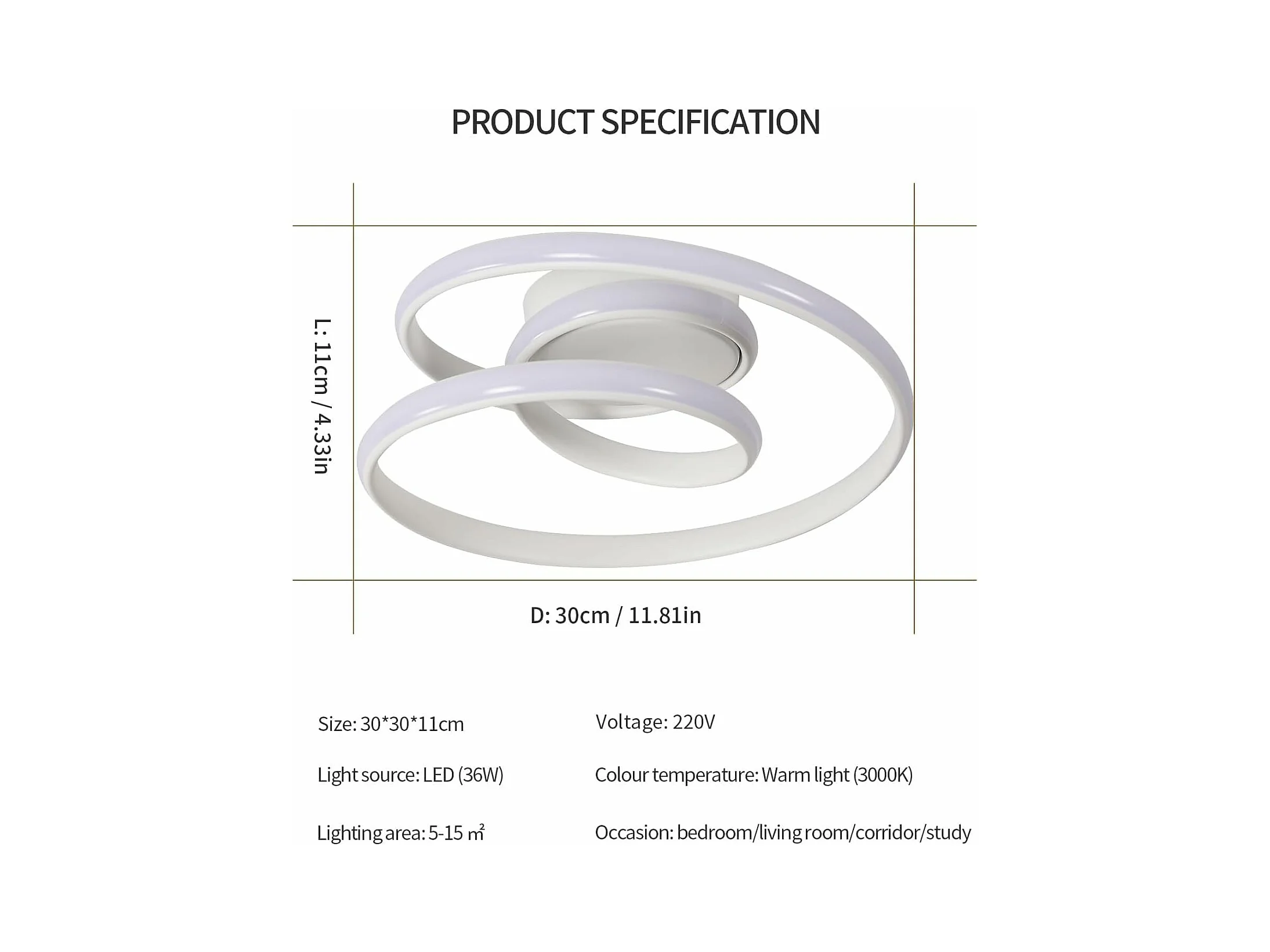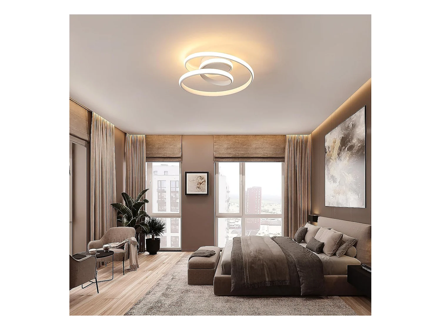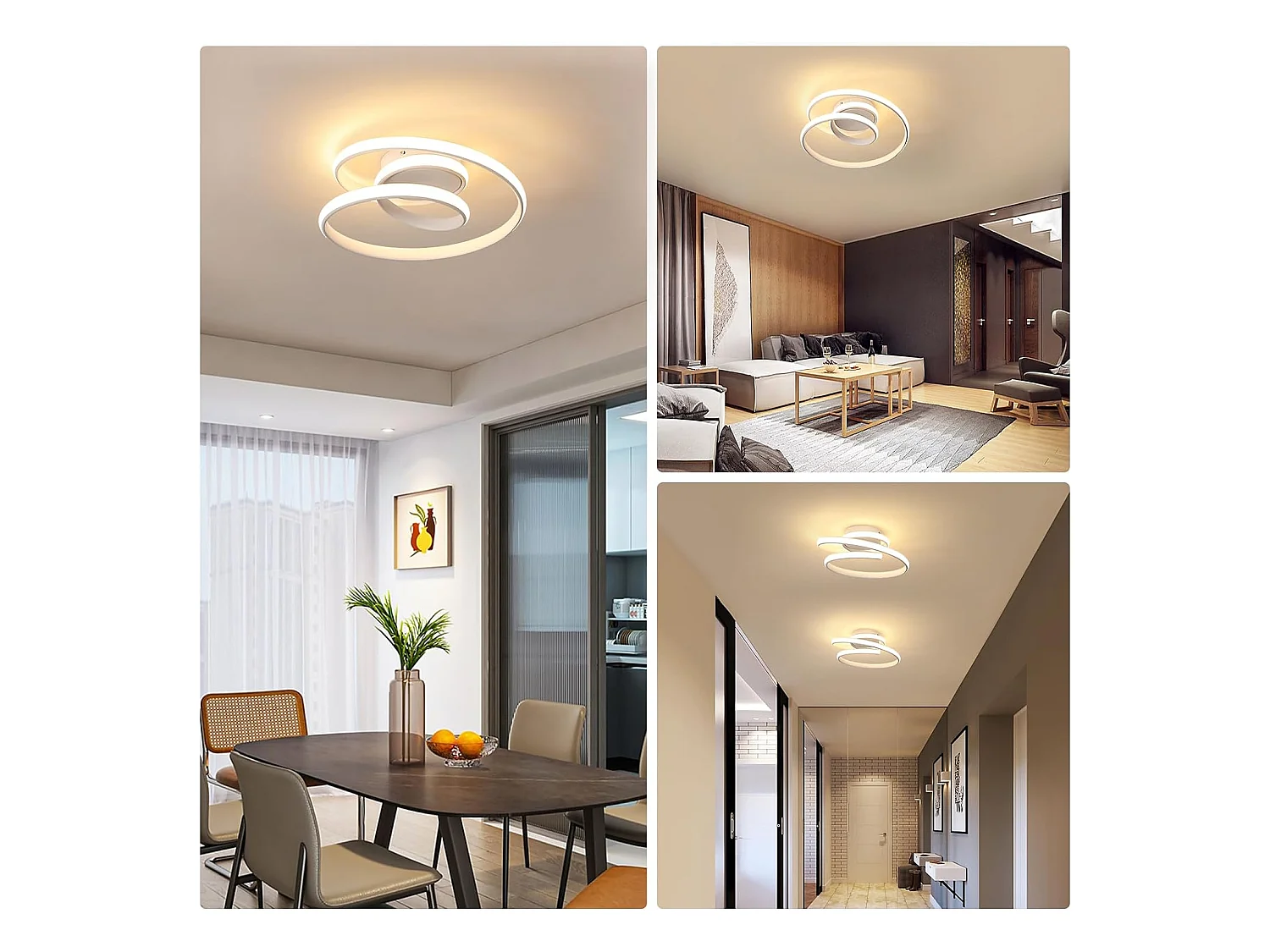 Plafonnier LED, 36W 4000LM Moderne Lampe de Plafond Blanc 3000K, Créative Lustre Led Plafonnier Rond en Forme de Spirale pour Salon Chambre Cuisine Couloir
