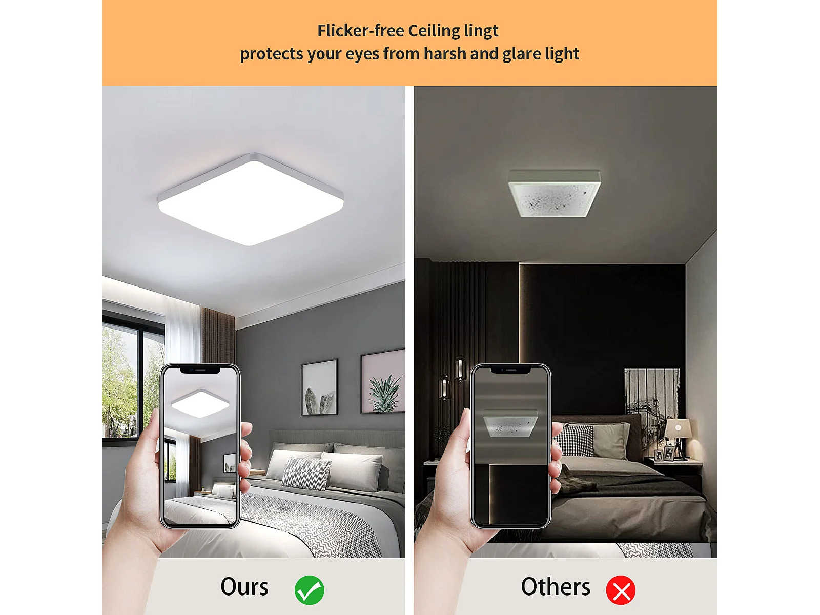 Plafonnier LED Blanc Carré Luminaire 36W 3300LM 4000K pour Salle De Bain Chambre à Coucher Cuisine et Couloir